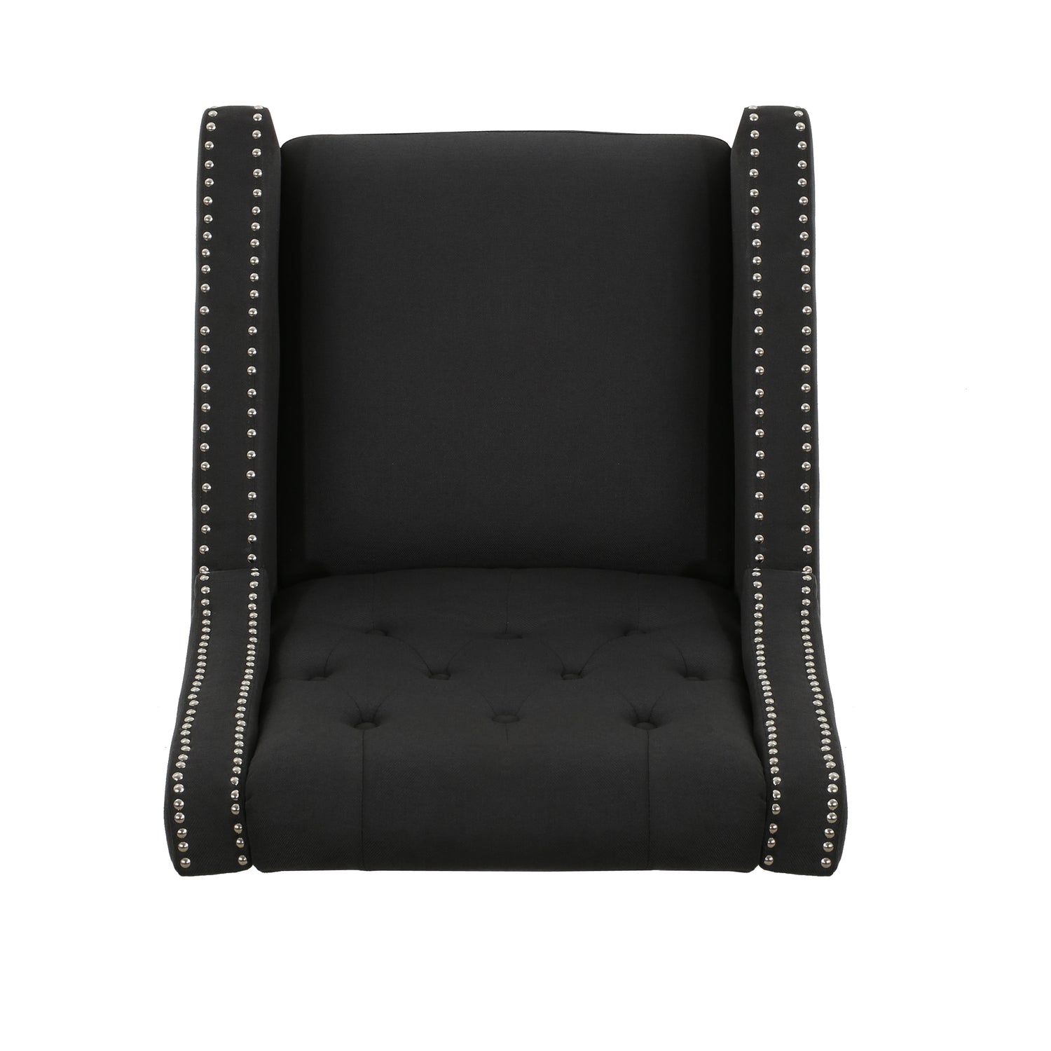 - Timeless Design, Comfortable Experience: Our Dark Grey Fabric Push Back Chair combines timeless design with a comfortable experience. Featuring classic riveted armrests and birch wood legs, it offers an elegant yet cozy addition to your home decor.