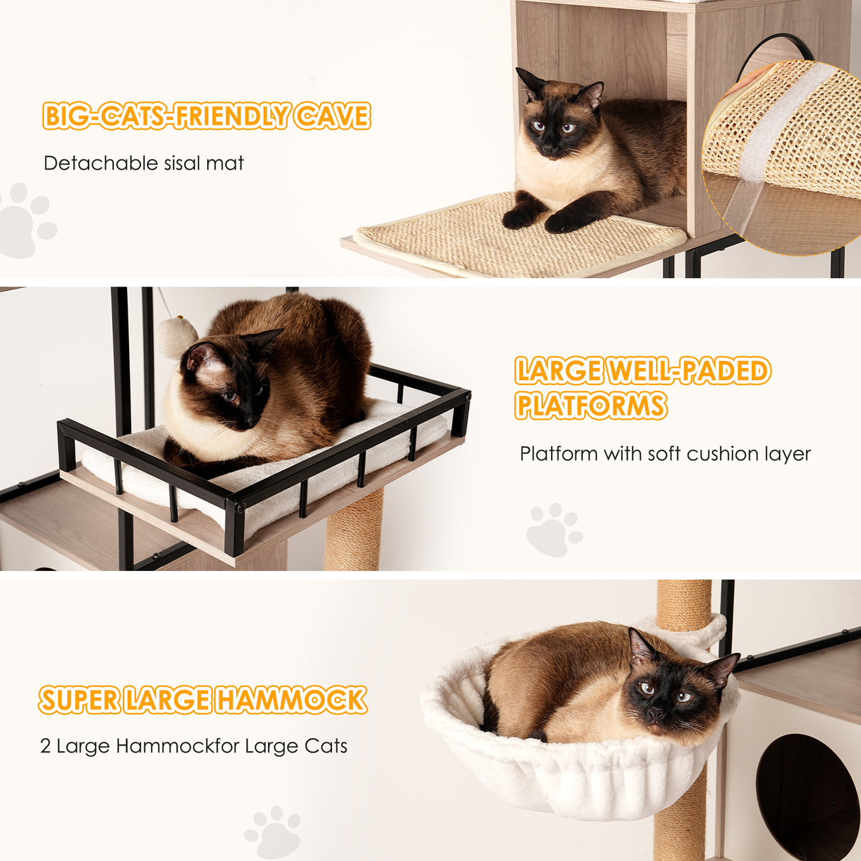 - Professional Cat-Centric Features?7cm thick scratching posts protect furniture. Non-slip base ensures stability. Dual condos ideal for multi-cat households.