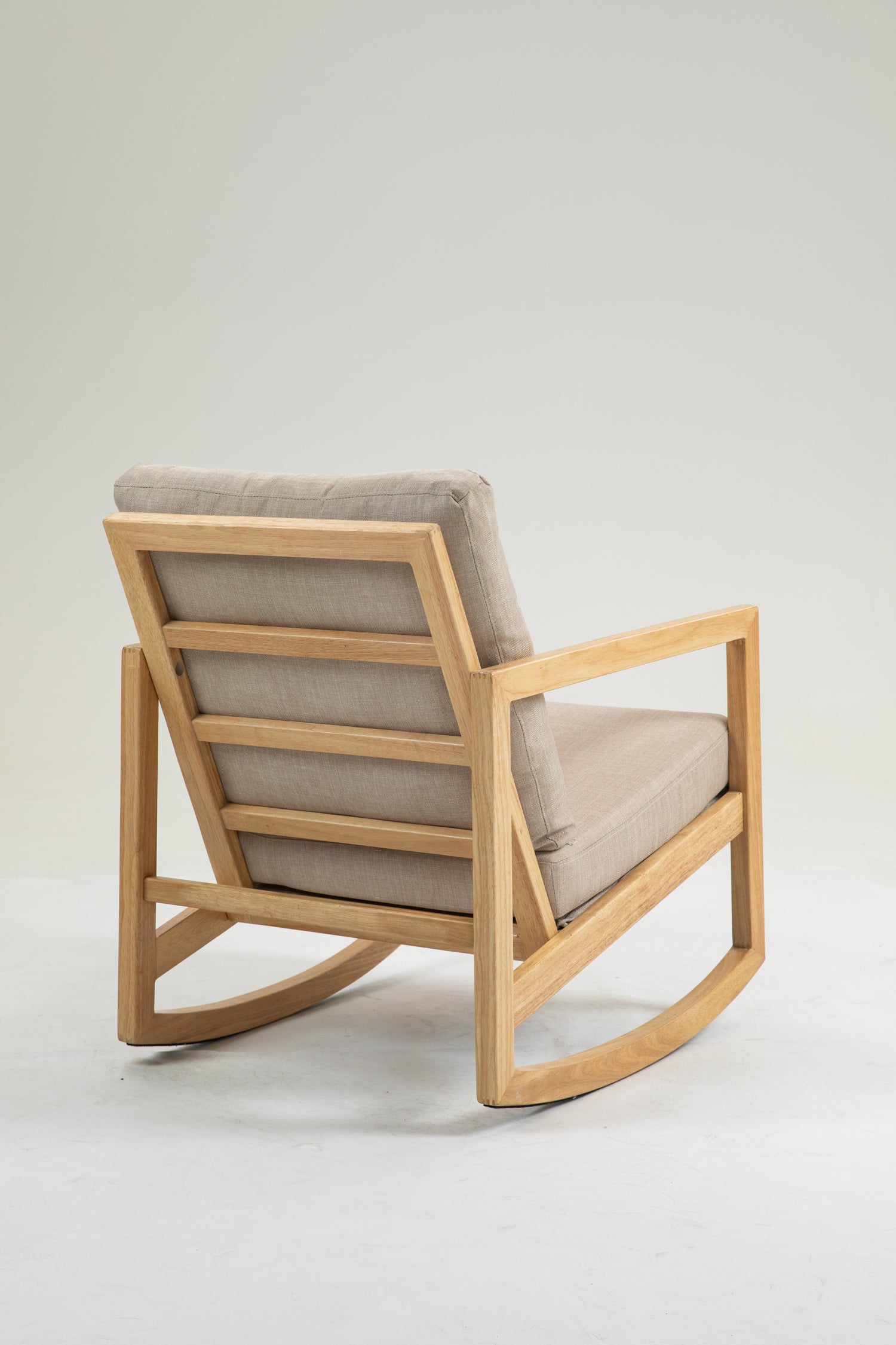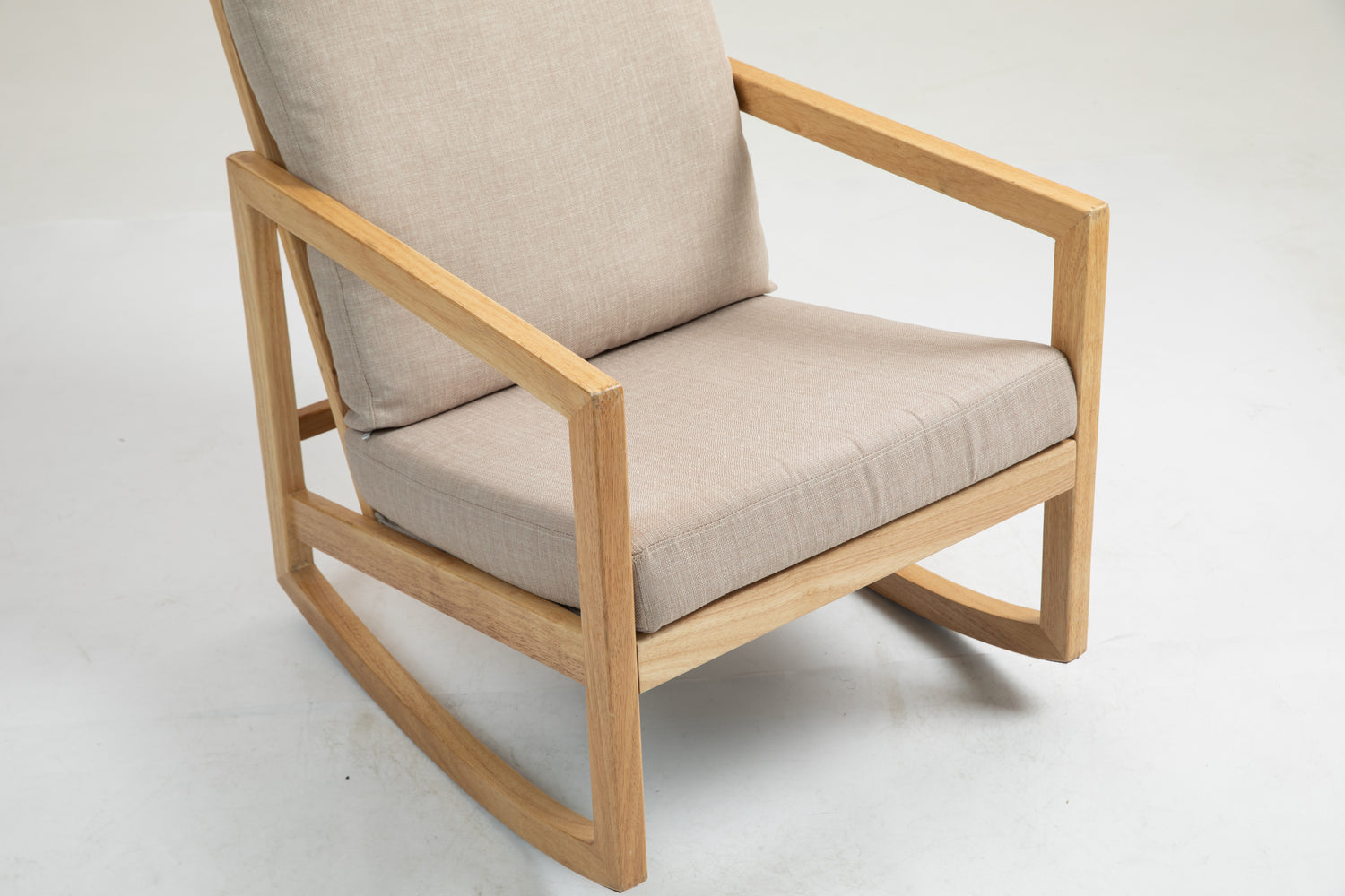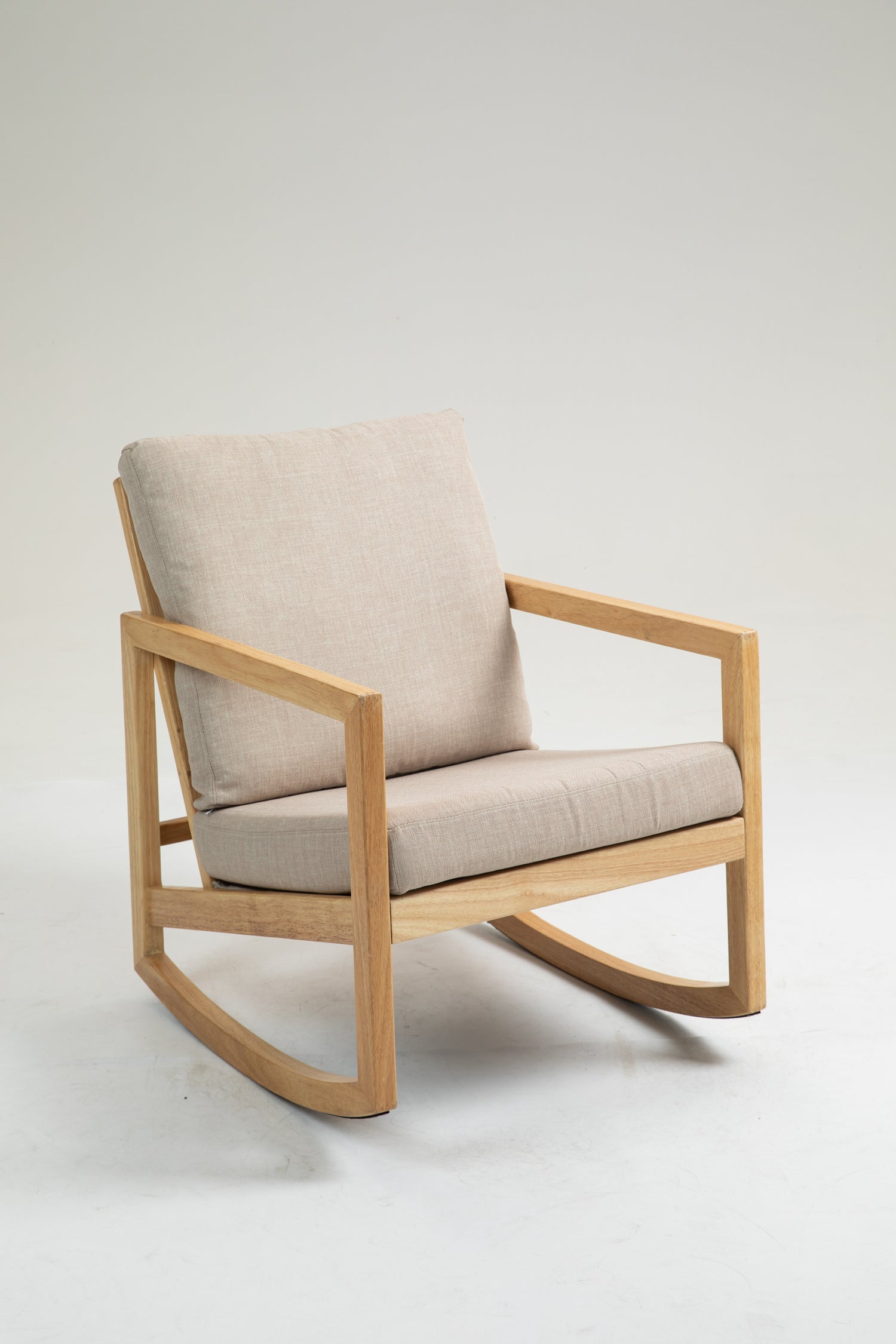 - LIVING ROOM ROCKING CHAIR: This accent chair touts sleek lines, but with subtle country-chic style. Warm, neutral hues play up the charm, while the plush cushions indulge you in modern comfort