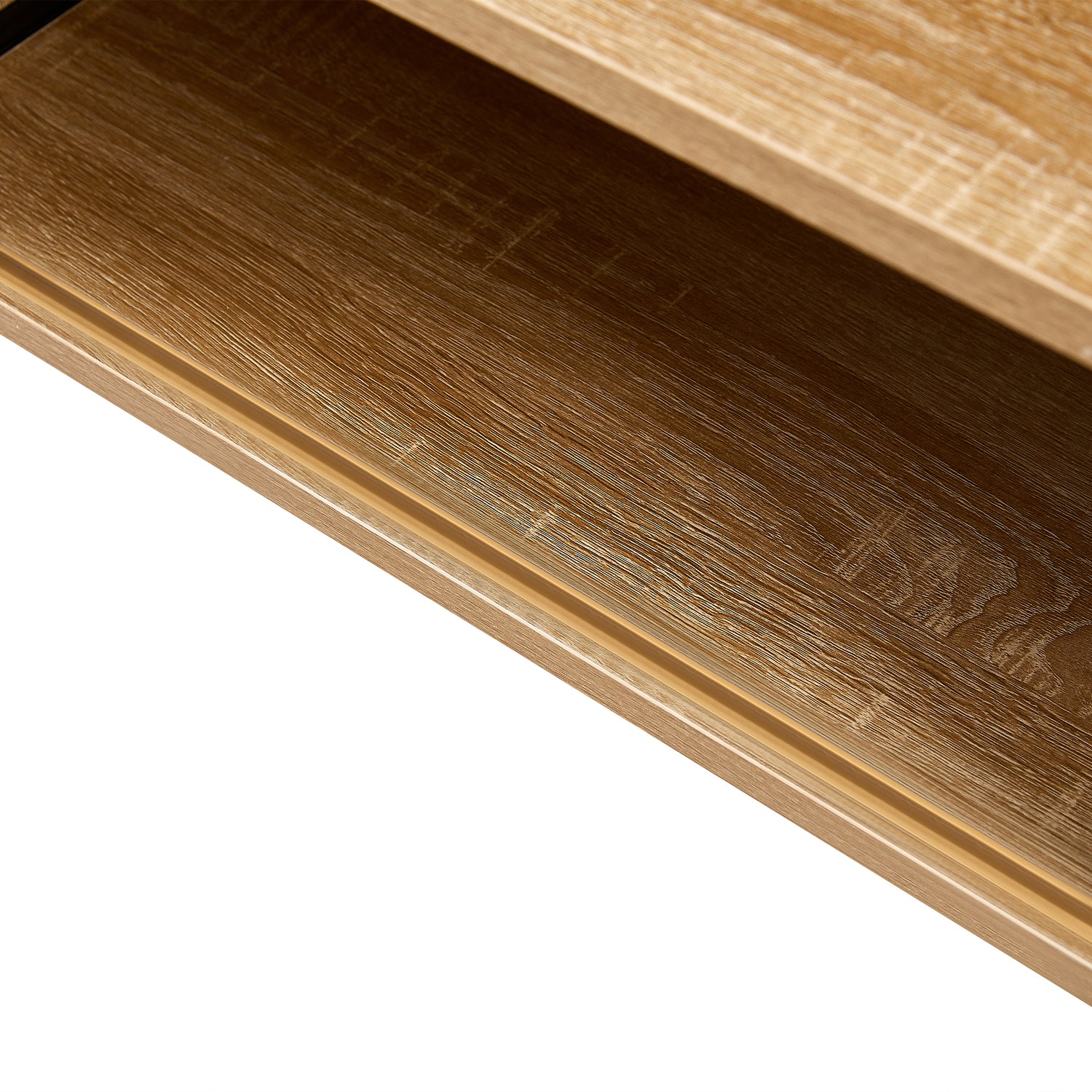 Material: The main body is made of MDF, with rattan woven door panels and metal legs.