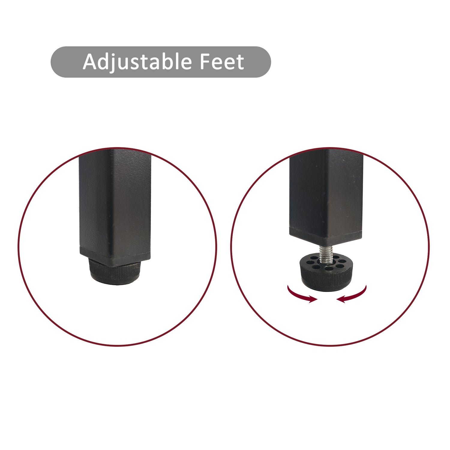 The metal table legs ensure that it is sturdy and durable.The adjustable PVC feet can keep it steady.