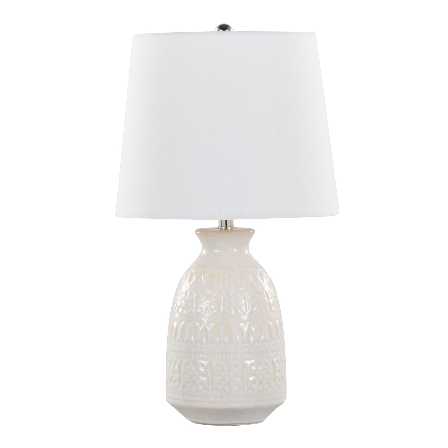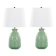 Illuminate your space with this stunning set of two table lamps, designed for both function and style. The vase-shaped bases feature a textured ceramic pattern, adding visual interest to any room. Perfect for nightstands, side tables, or office desks, these lamps bring contemporary charm to your decor. A convenient rotary switch ensures easy operation, while the versatile design complements various interiors. Enhance your lighting and style effortlessly with this elegant pair.