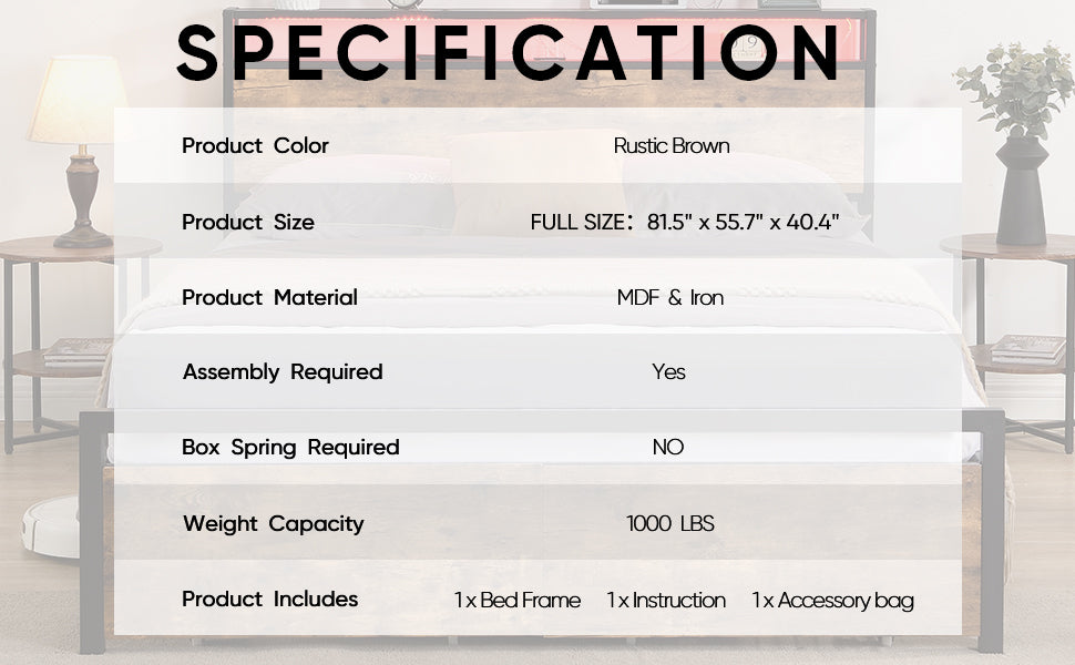 ? No Box Spring Required – A convenient and cost-effective design that works with any full-size mattress.