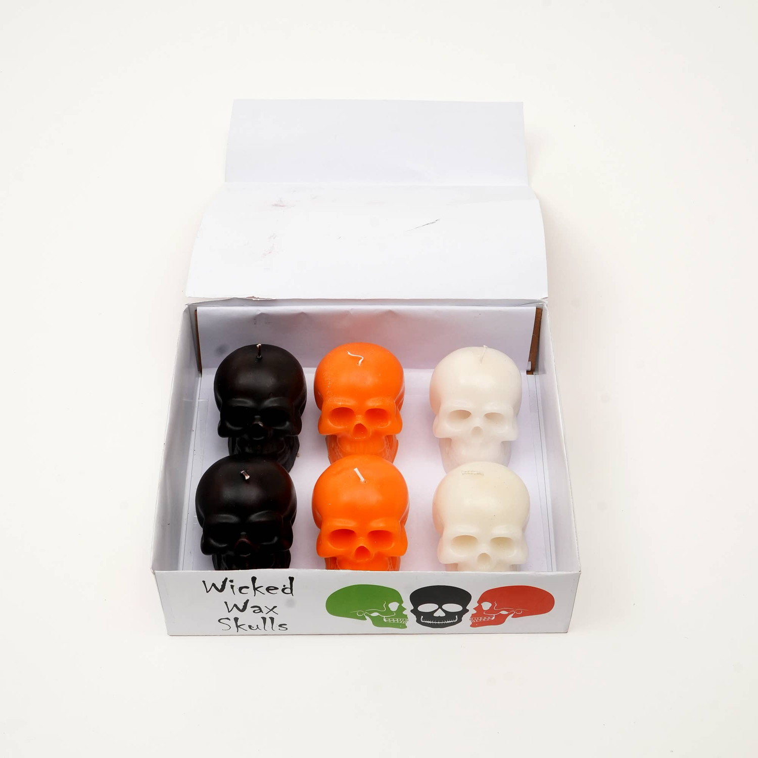 Halloween Funky Multicolor Skull Candle Box-6 Pcs
