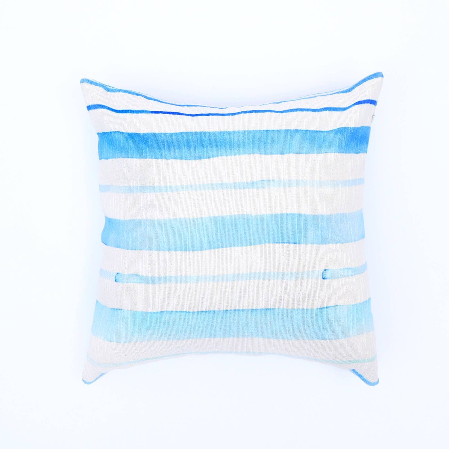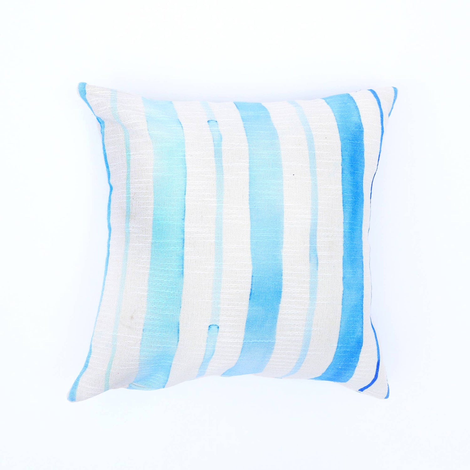 Handmade Cotton Slub Printed Pillow - Wave Whispers Design - 18'x18'