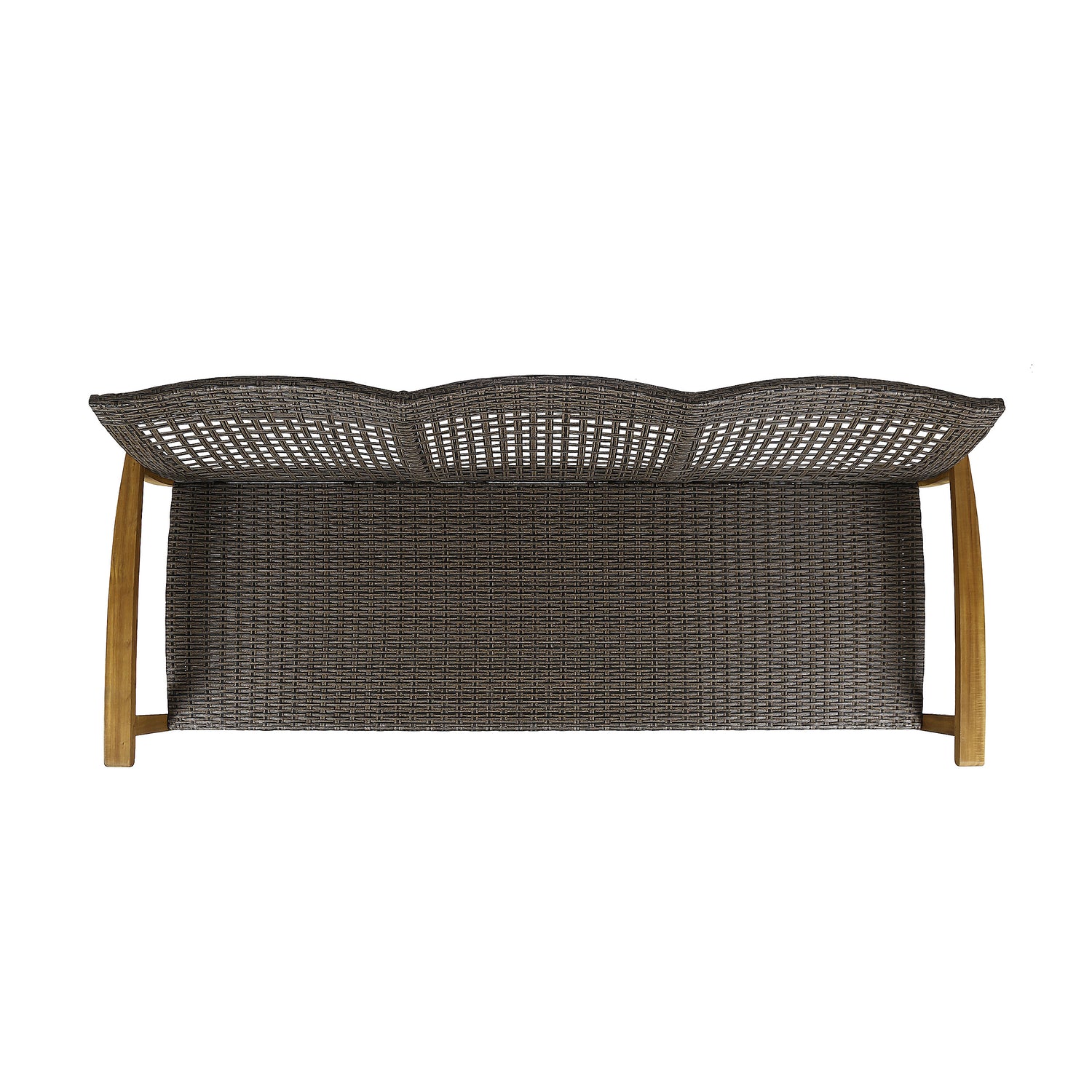 Whether hosting guests beneath string lights or savoring a quiet morning in the sun, this handwoven wicker and wood sofa offers an elegant foundation for outdoor leisure—crafted to stand the test of time with style and grace