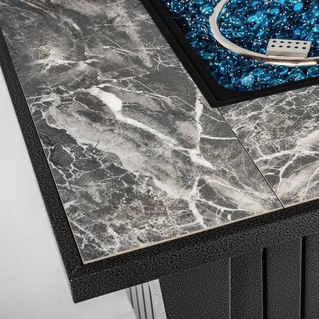 32inch outdoor square propane fire pit table with blue glass beads, rain cover and glass wind guard