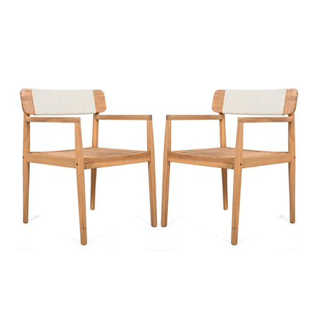 Creative Braided Acacia Wood Outdoor Dining Chairs with Armrests, Teak Look & White Rope, Set of 2