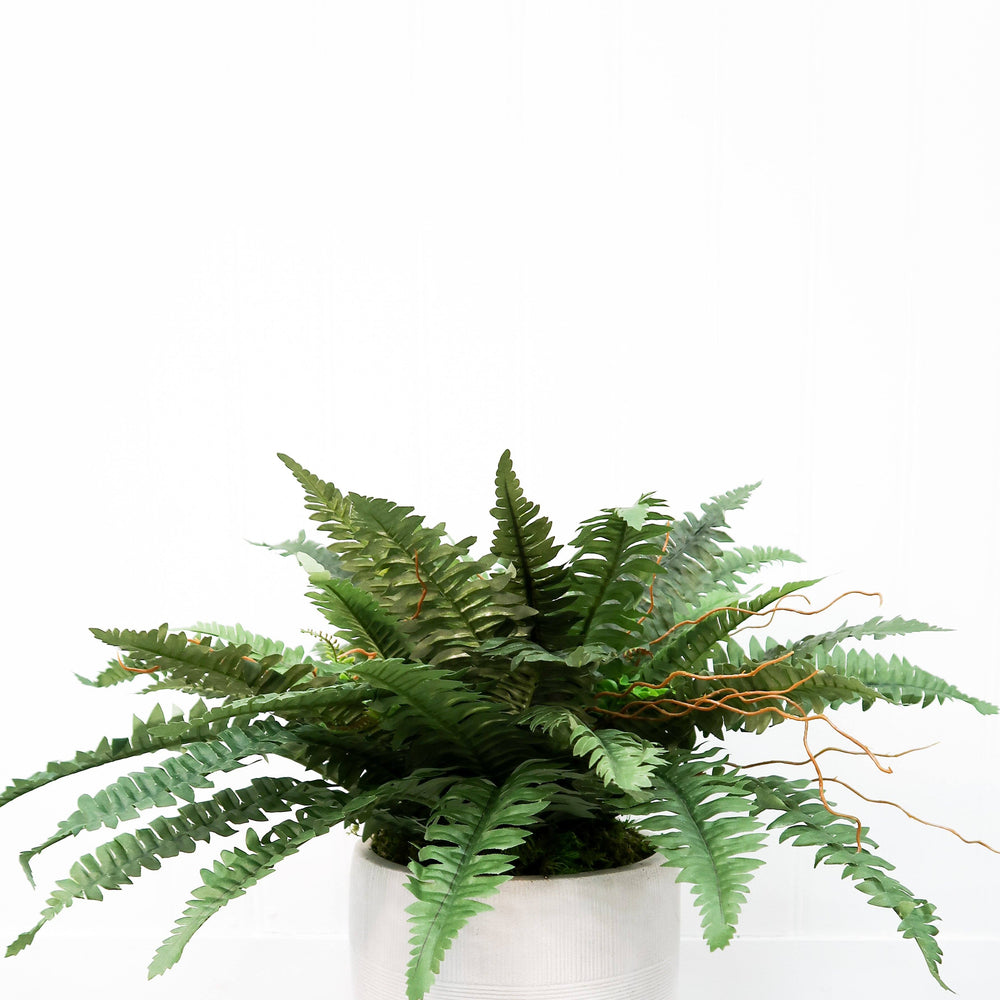 Sword-shaped fronds with shallow toothed pinnate gently curve down to gracefully hang 40". The Boston Fern is a classic houseplant overflowing with evergreen tiny leaves giving the plant a full and luscious look. Place up high on a pedestal, hanging basket or up on a windowsill for a simple touch of greenery. This set of 2 is the perfect accent for when you have a compact area and need to add some greenery. Assembled in the USA from high-quality materials, add this faux Boston Fern plant to any area and watch it move with the wind. Inspired by nature and horticulturist designed and approved, you won’t believe this faux tree is real. No matter your style décor or taste, the Boston Fern is a great option for everyone.