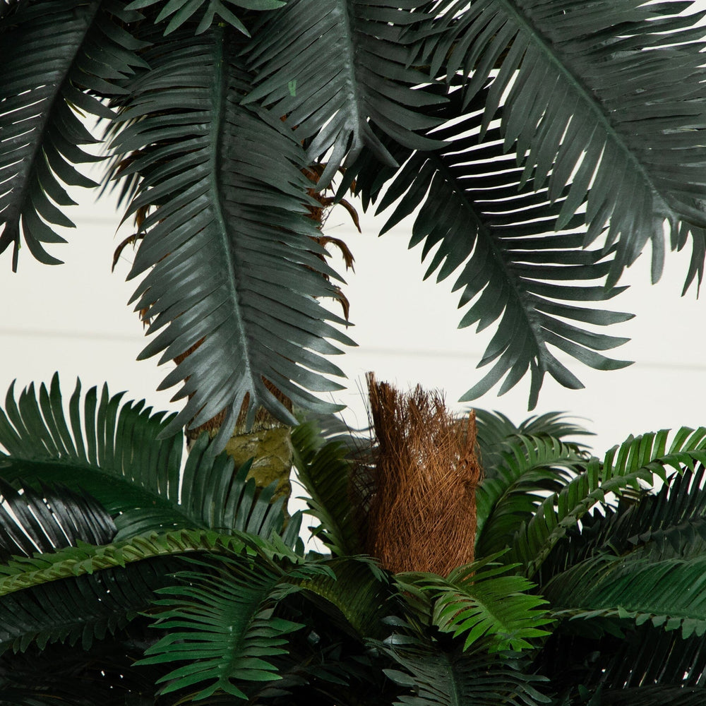 This double potted silk Sago Palm tree is simply paradise! It features two beautiful stalks of Sago Palms; one 4’and one 6’. This tree boats 80 green leaves and is set in a 10” brown basket. The trunks themselves are browning in spots and feature the texture of a real palm. This breath taking tree is the perfect accent piece to any home decor. Color: Green, Height: 6’ & 4’.