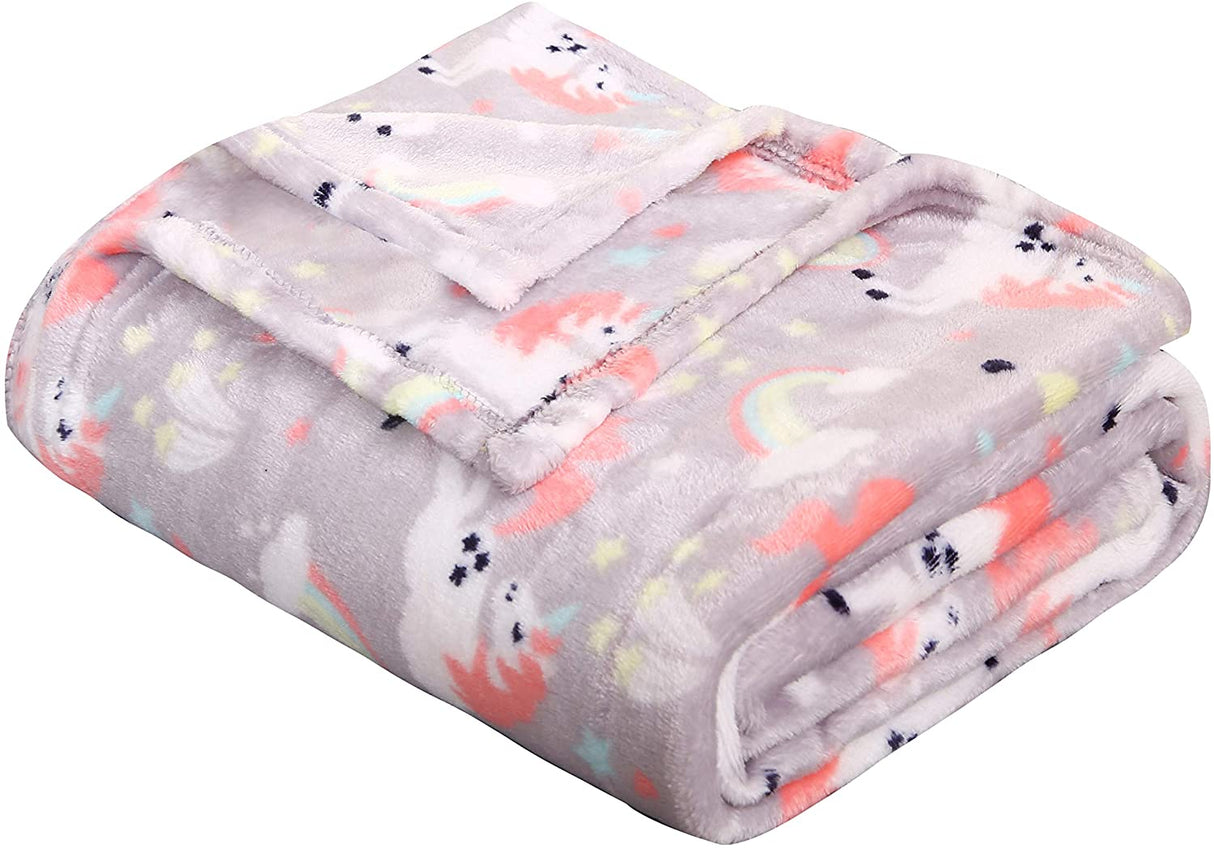 Boy's and girl's set of 2 plush fleece throw blanket (50" x 60") - dinos and unicorns