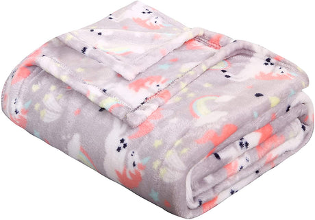 Summertime whimsy plush fleece throw blanket (50" x 60") - rainbow unicorn