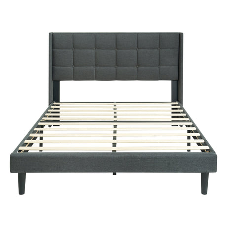 Upholstered Bed Button Tufted with Curve Design - Strong Wood Slat Support - Queen