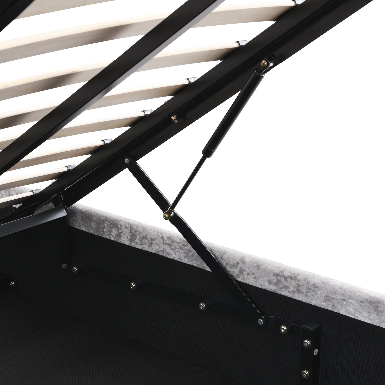 - This Hydraulic lift mechanism technology pops out of the platform effortlessly, and there's no worry of the mattress sliding around the frame rear guard. In addition, the lifting design allows the use of a larger under-bed space, where some large and idle items can be placed, making the interior look cleaner and tidy.