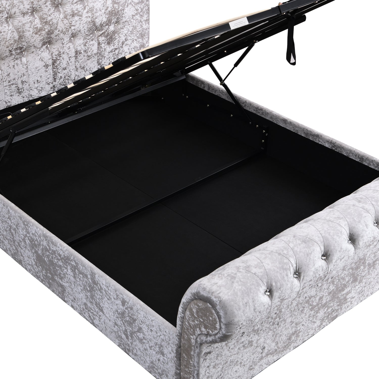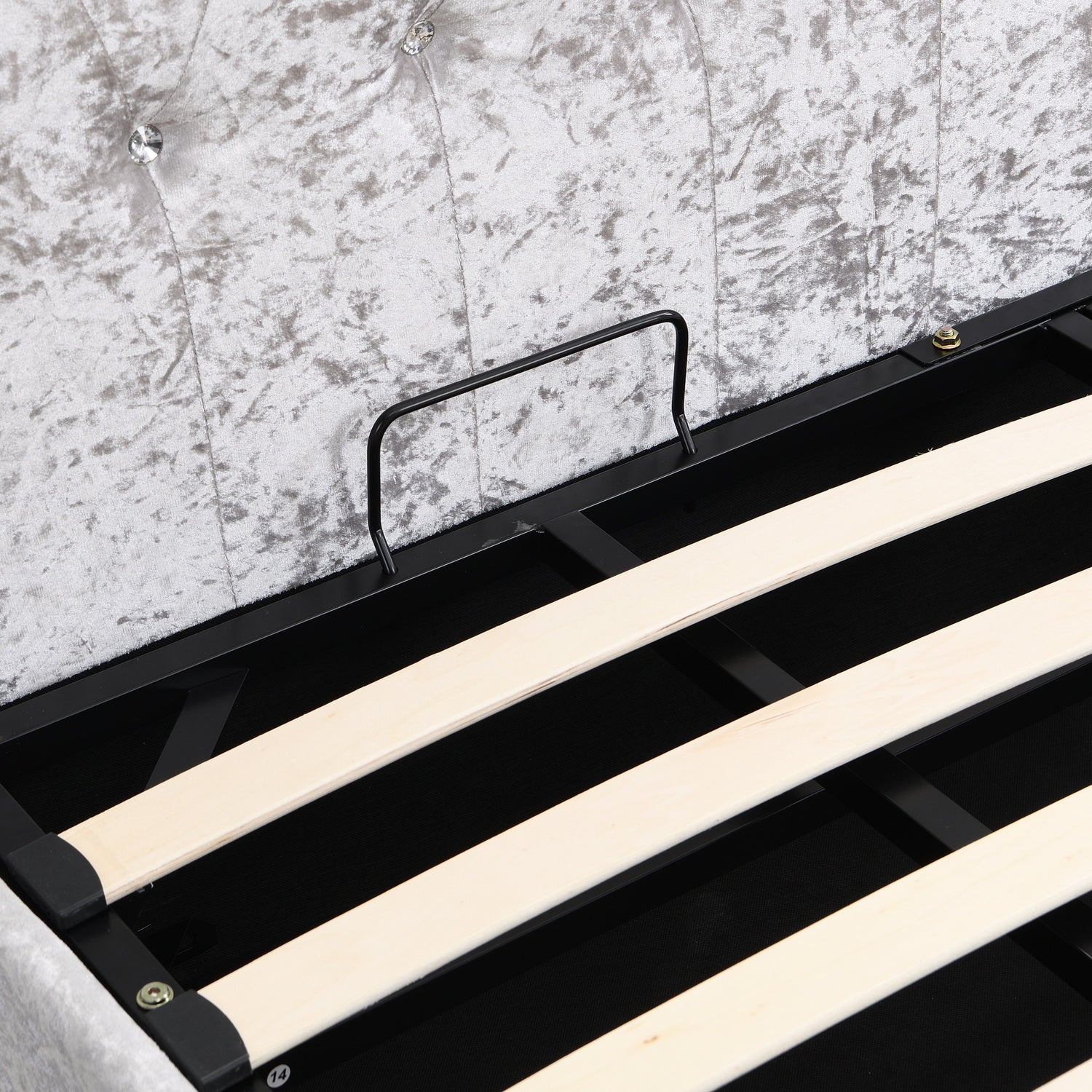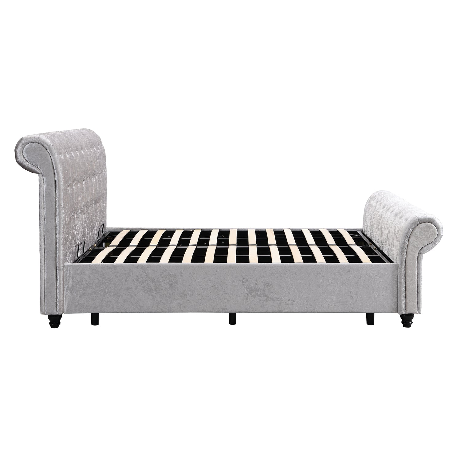 - We love that the padded wide bend crown headboard brings an elegant look to your bedroom. This bed frame features a handy slat system that props up your mattress (sold separately) without the need for a box spring, it has a hydraulic-lift mechanism that offers plenty of underbed storage.