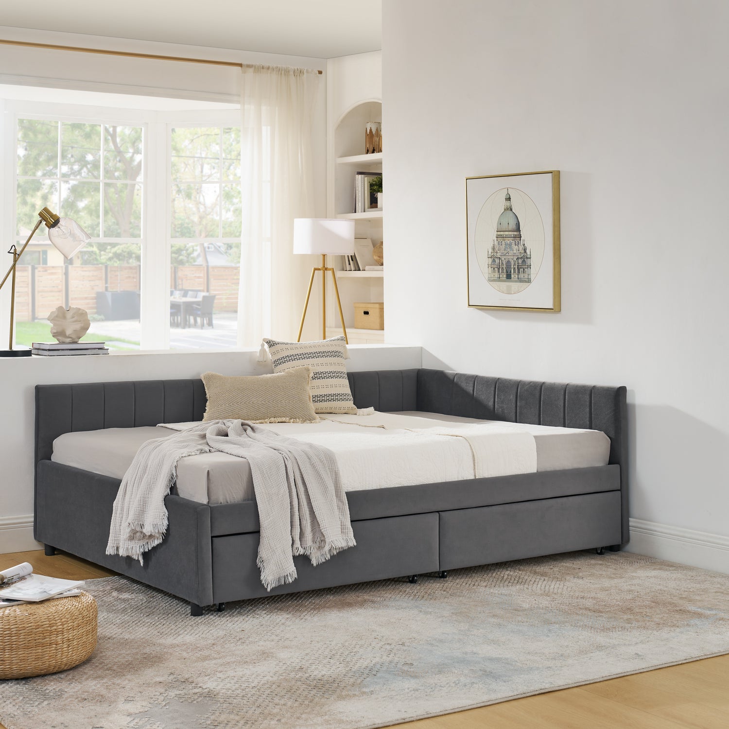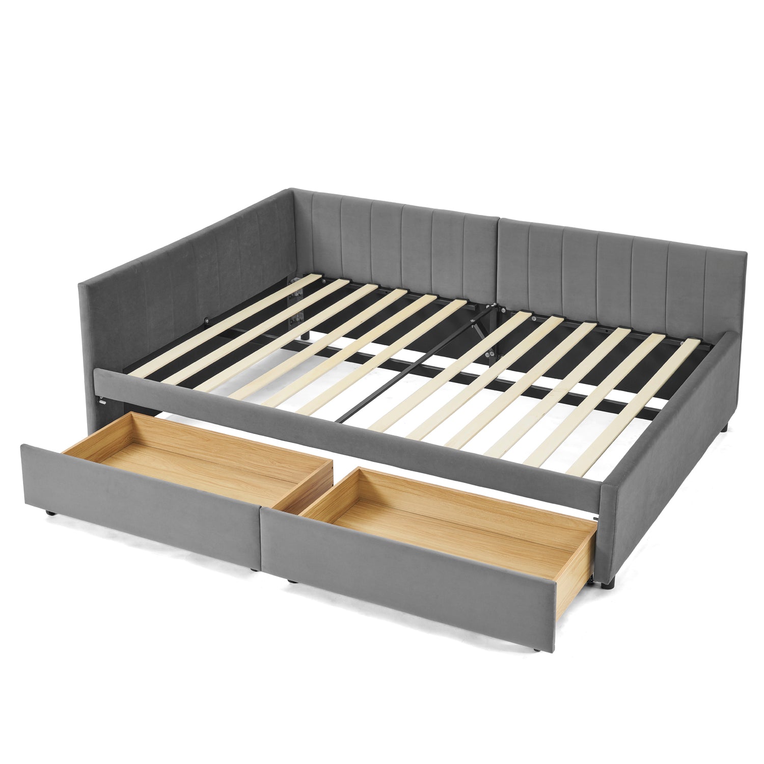 Full Size Upholstered Tufted Bed Frame with Two Drawers, Sofa Bed Frame, Velvet, Grey (79.5''x58''x25'')