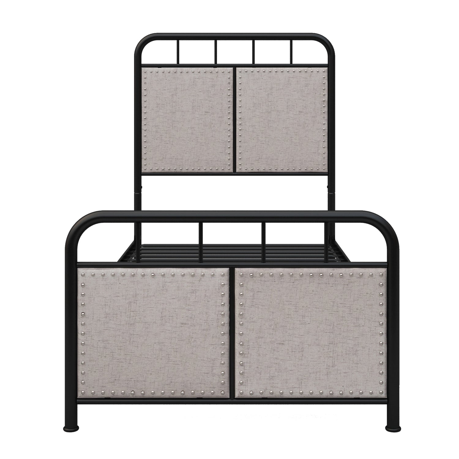 Twin Size Linen Upholstered Platform Metal Bed Frame with fabric Headboard and Footboard