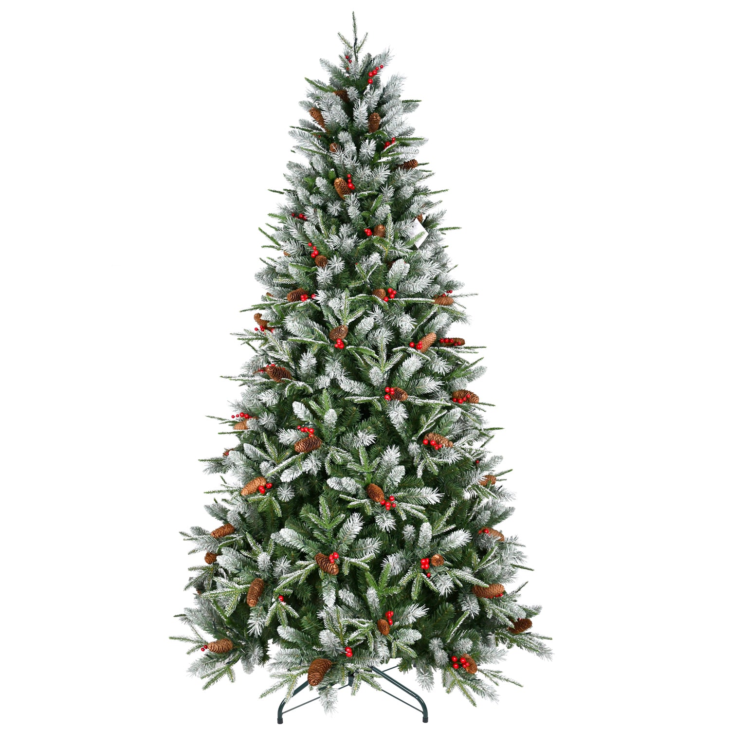 Evoking the beauty of a snow-dusted forest, this elegant tree blends natural woodland details with a festive wintry finish. Adorned with lifelike red berries and pine cones, its richly textured branches bring warmth, depth, and timeless holiday charm to your home.