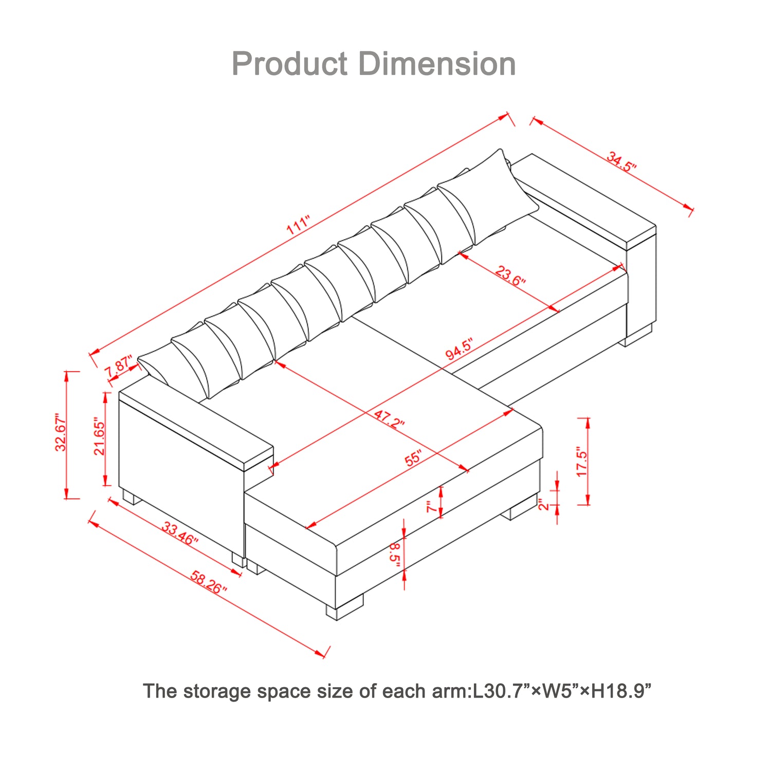 - Storage: The large armrests on both sides of the sofa come with storage space, which can accommodate items such as pillows and magazines.