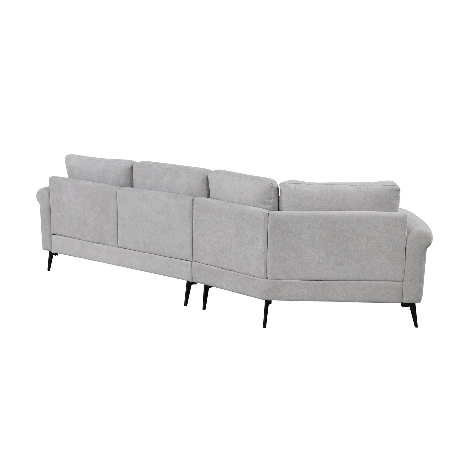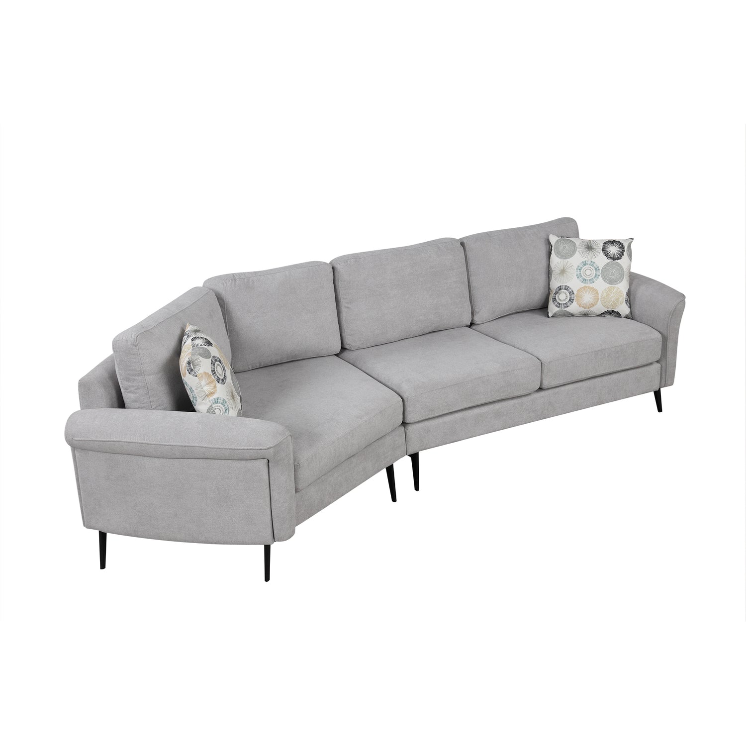 - Elegant Design - The three-seat sofa features a sleek, curved design that enhances both its visual appeal and comfort. The gentle arc shape promotes a more relaxed seating experience by allowing for a natural flow of movement and providing better support for the body. This modern, ergonomic design not only adds elegance to any room but also ensures a more comfortable and inviting seating option.