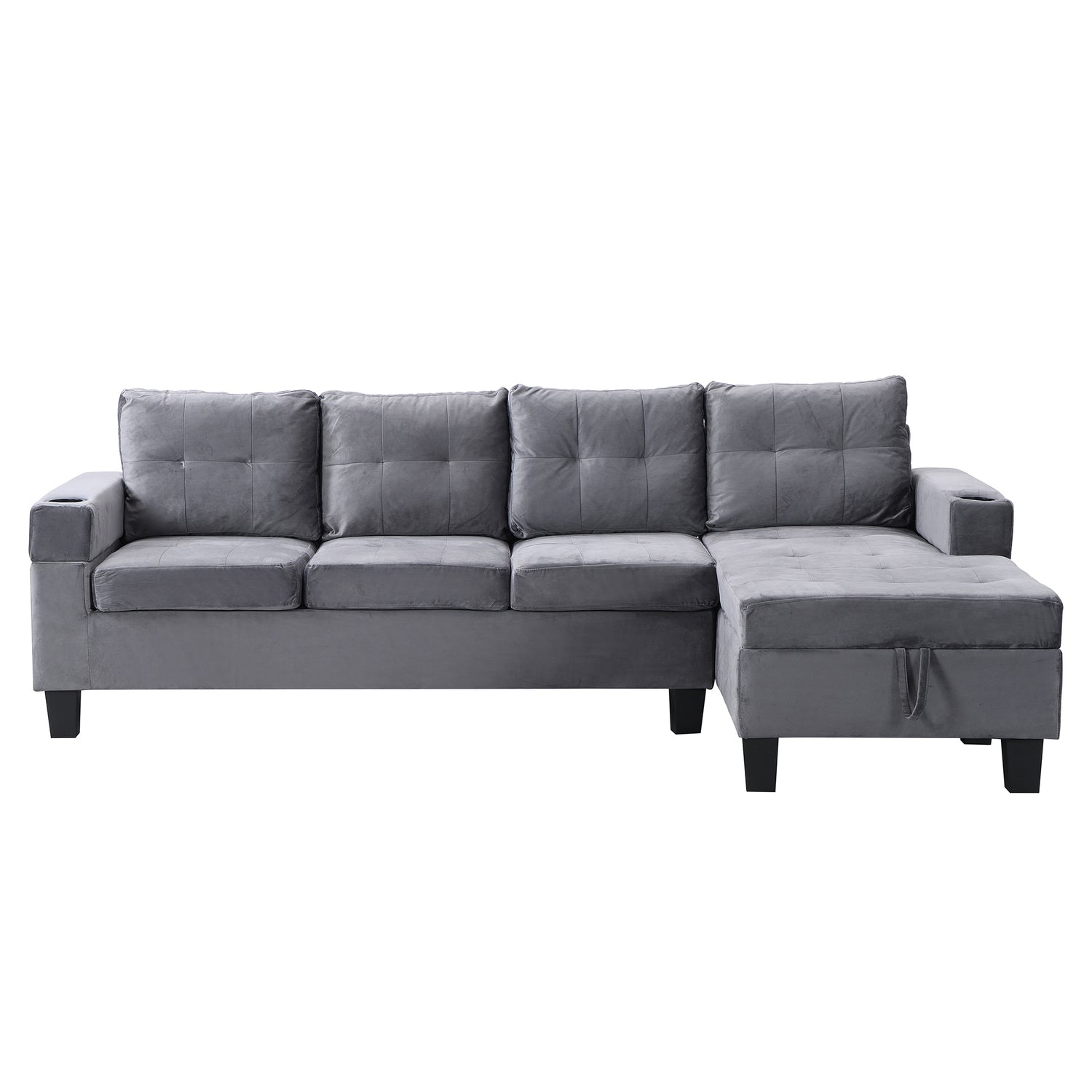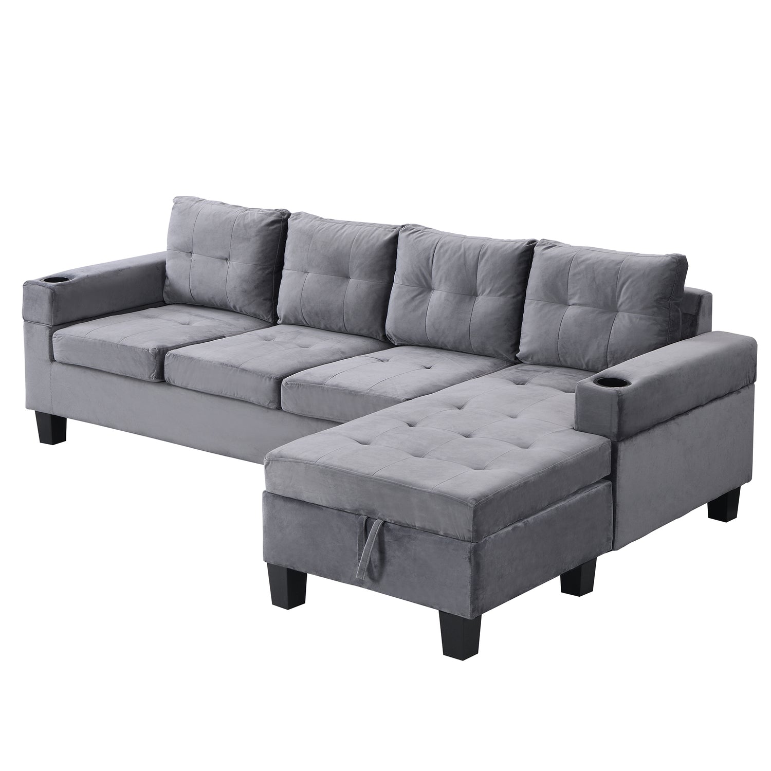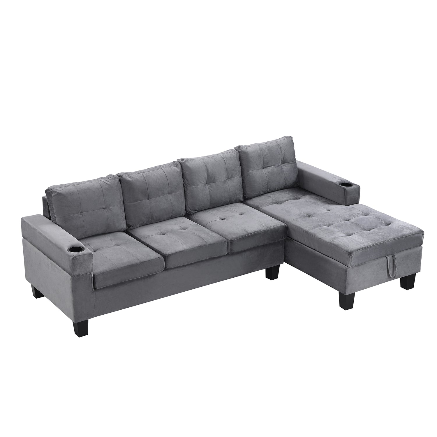 - Sofa with Left Hand storage Chaise and two cup holders (Gray)