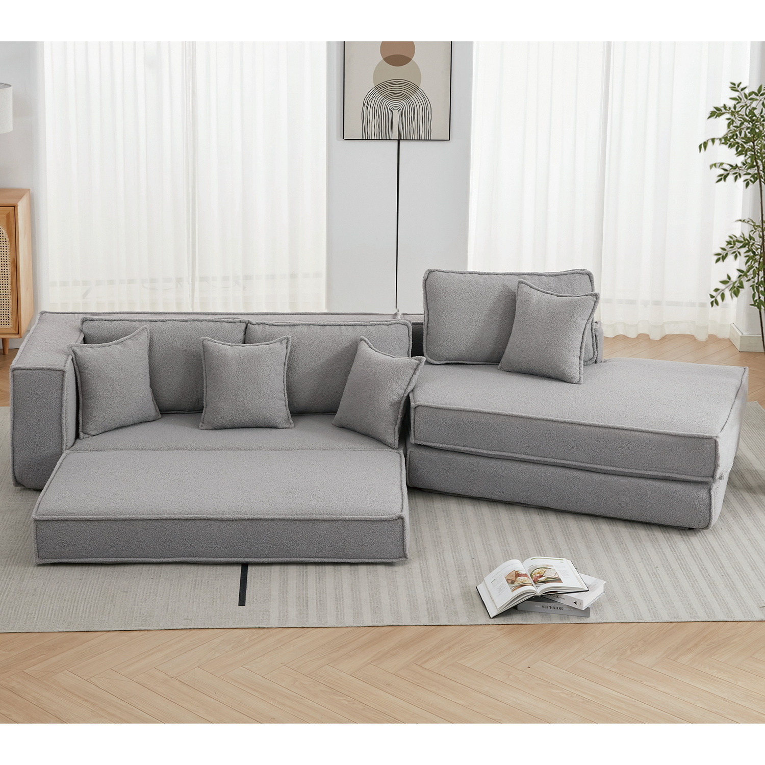 Made of Lamb velvet fabric, the oversized sleeper sofa feels soft, wrinkle resistant and breathable.