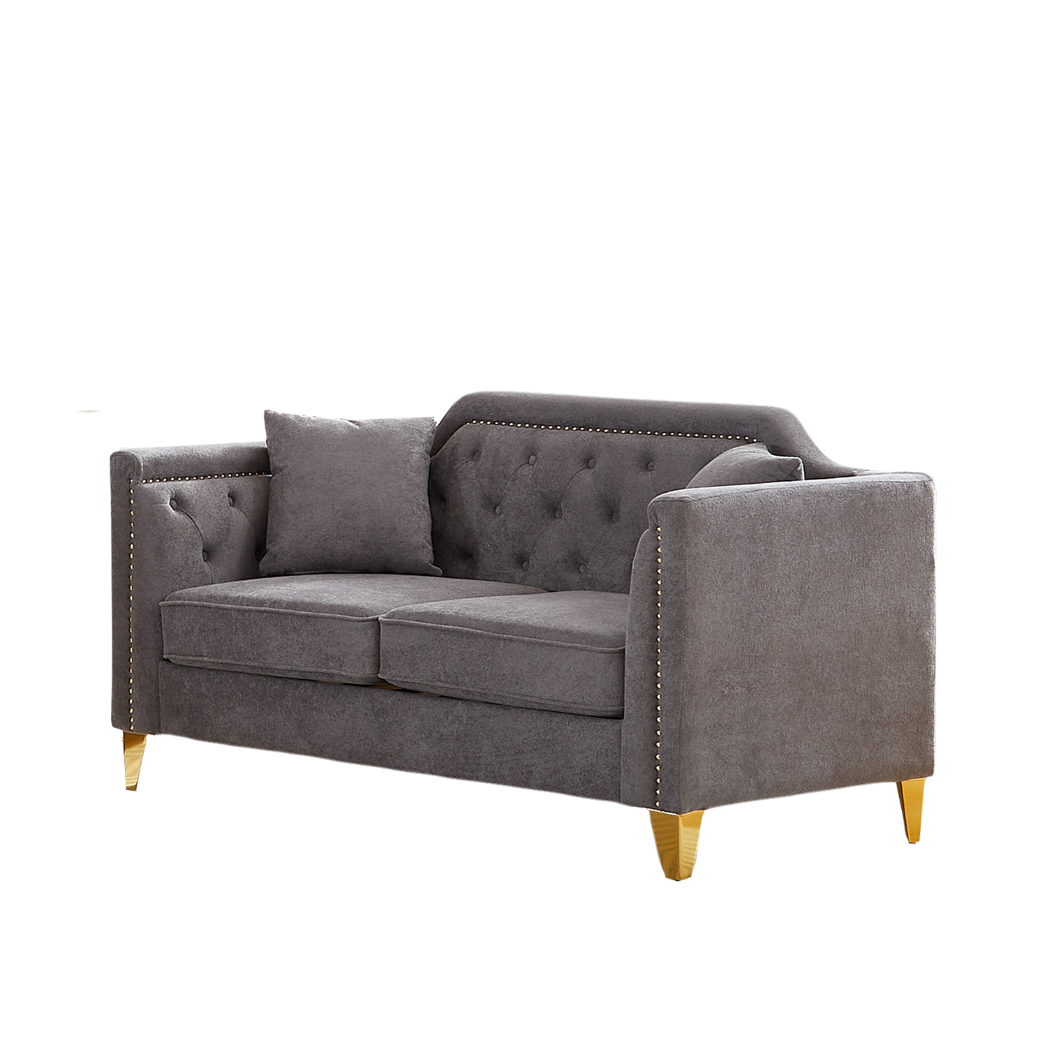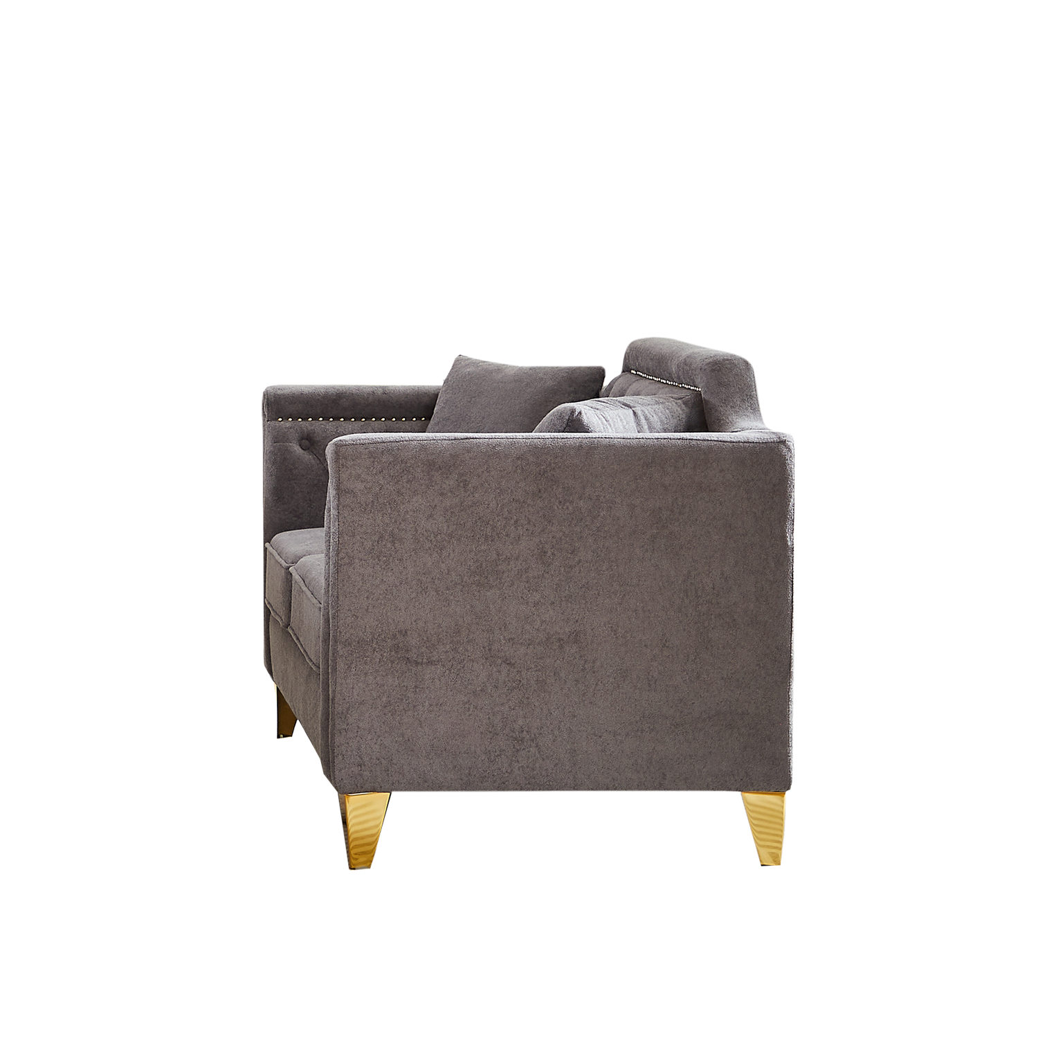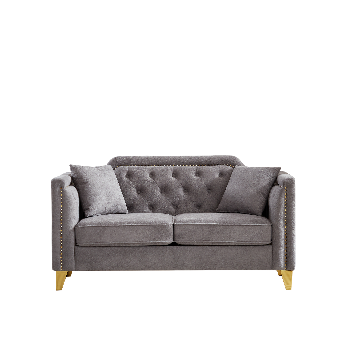 - √ UNIQUE DESIGN: The unique combination of gold-colored metal legs and brass nails on the armrests makes it look high-end. The inlaid button design also brings a few noble qualities to the sofa. This sofa will be a bright and complementary addition to your home or office.