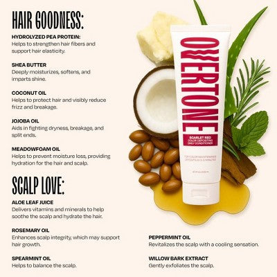 Overtone Scarlet Red Daily Conditioner- Semi-Permanent Ruby Red 4.5 oz - New