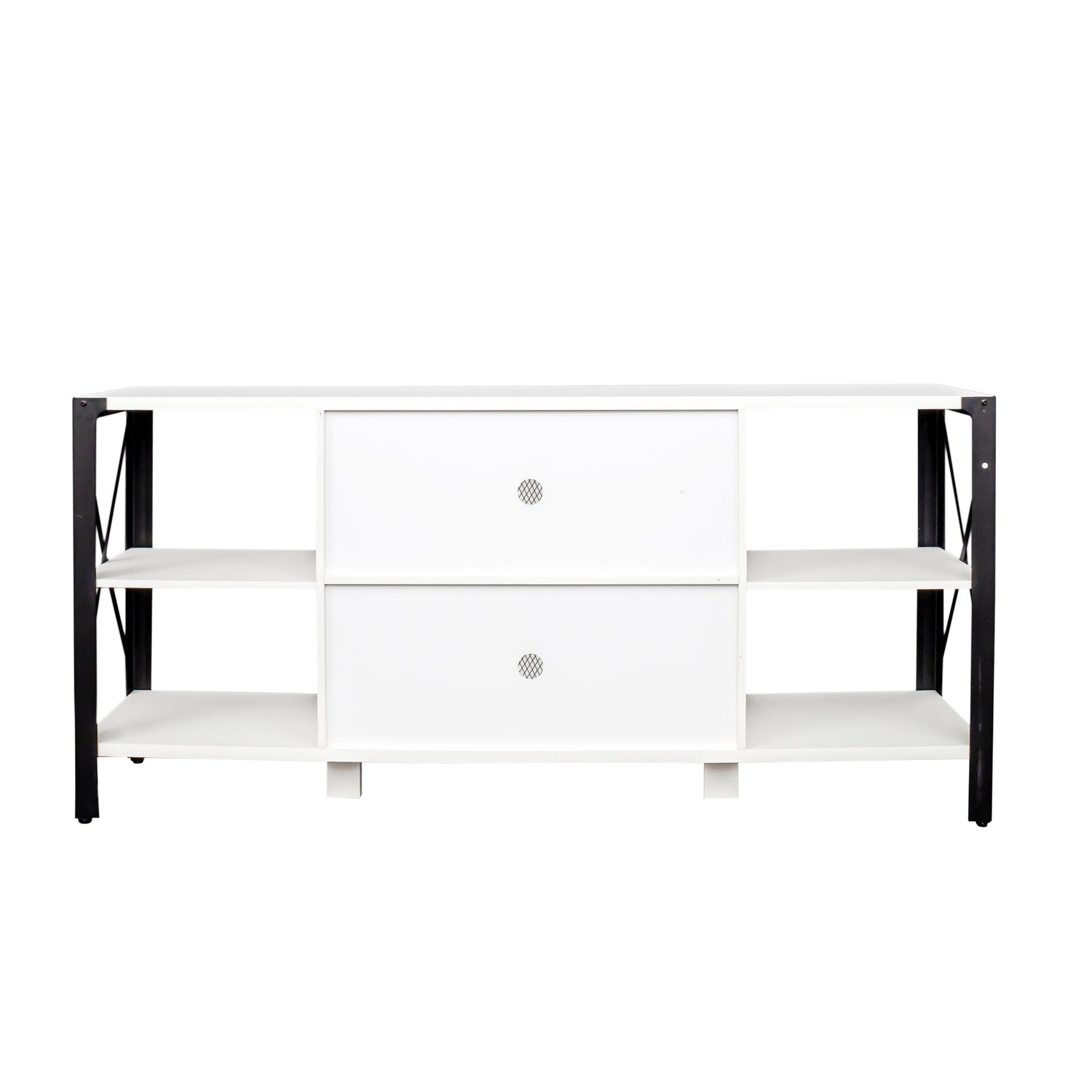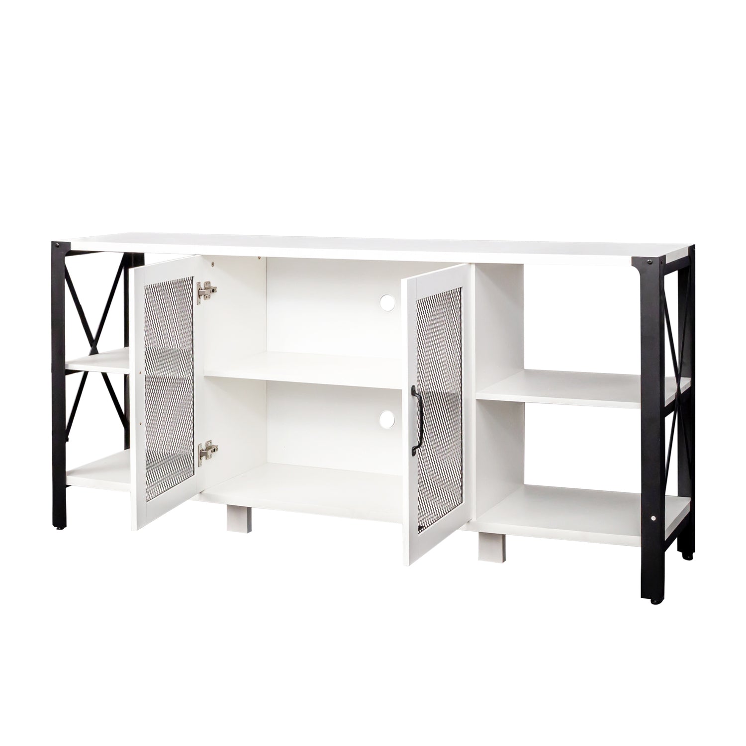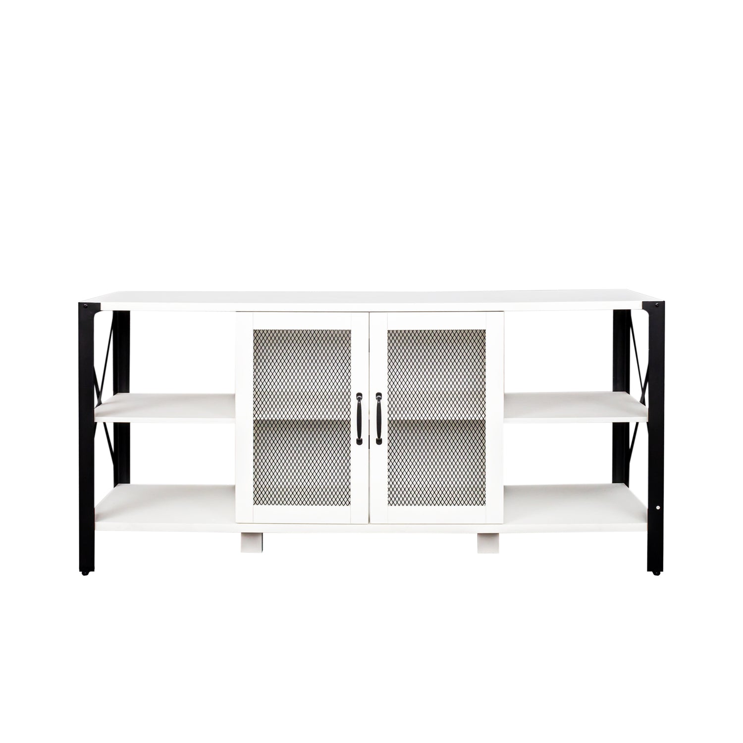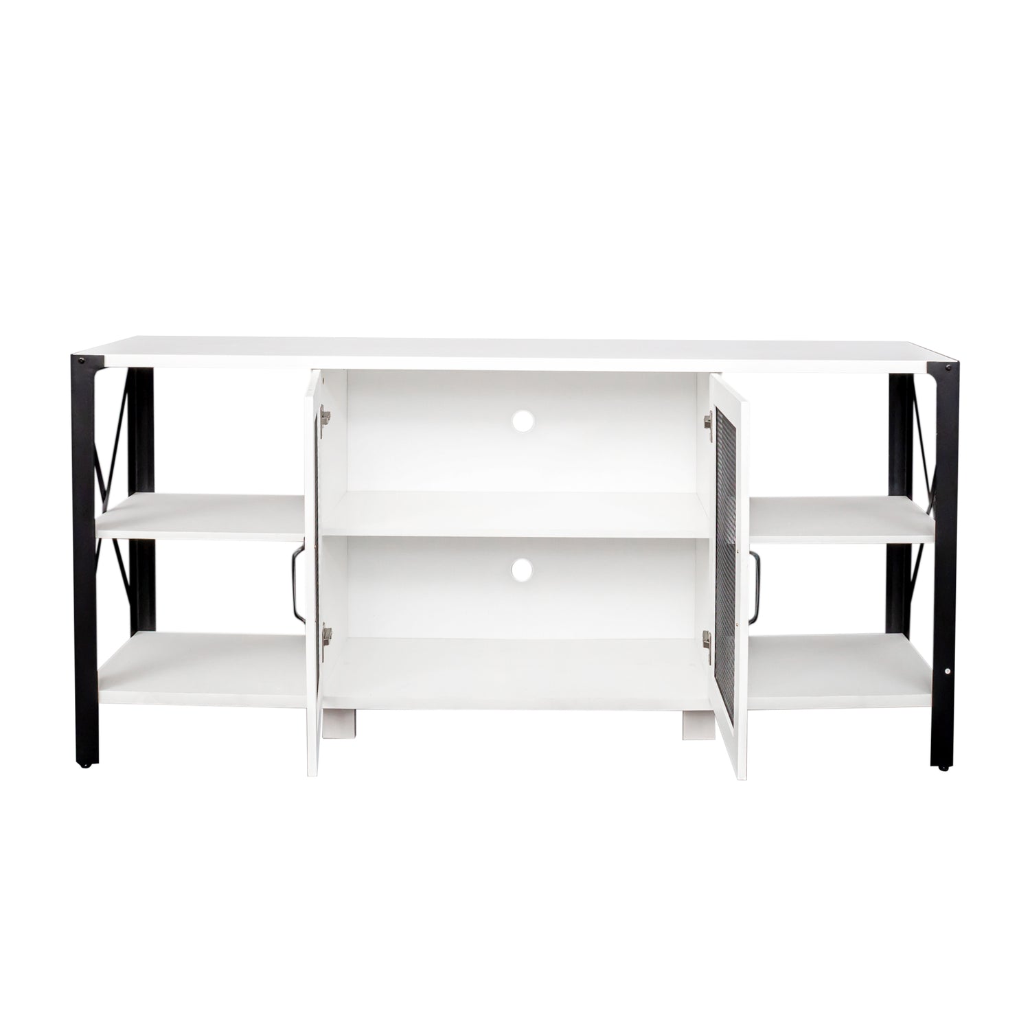 - 【Plenty of Storage Space】 - This TV stand offers the versatility of an open storage design. It features spacious open shelving, and the mesh door in the center opens to provide ample storage space for media players, game consoles, and decorative items to keep everything organized.