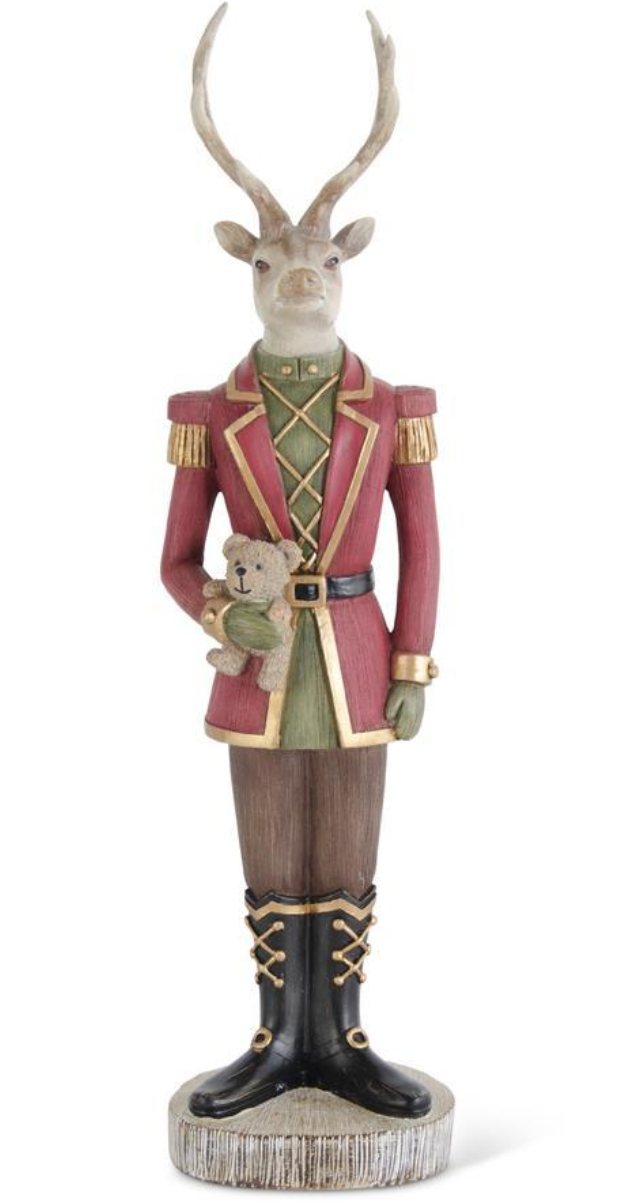 This 15" Deer Soldier Holding Teddy Bear combines unique charm with heartfelt symbolism. Perfect as a meaningful gift or a standout decor piece, it depicts a soldier deer gently holding a teddy bear, evoking warmth and protection. Crafted with attention to detail, it adds a touching and memorable accent to any space.