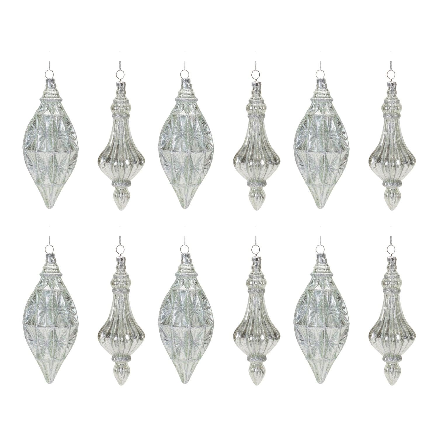 Adorn your Christmas tree and holiday decor with this stunning set of Glittered Glass Drop Ornaments. Featuring 12 pieces, the chi silver tones paired with the glittered design is the perfect combination to create a memorable display. The quality glass composition and delicate silver string hanging accent is sure to endure for seasons to come. Whether you're adding a touch of cheer to your home or gifting to a loved one, these ornaments will definitely bring smiles.