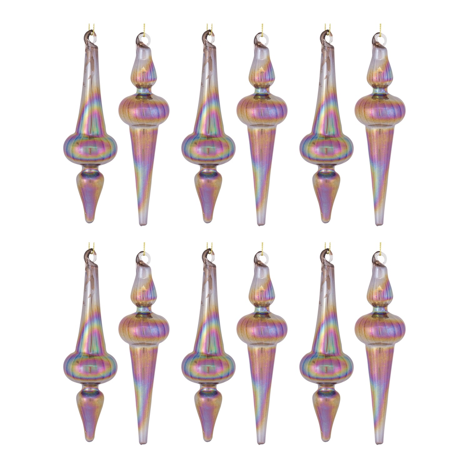 Irredescent Glass Finial Drop Ornament (Set of 12)