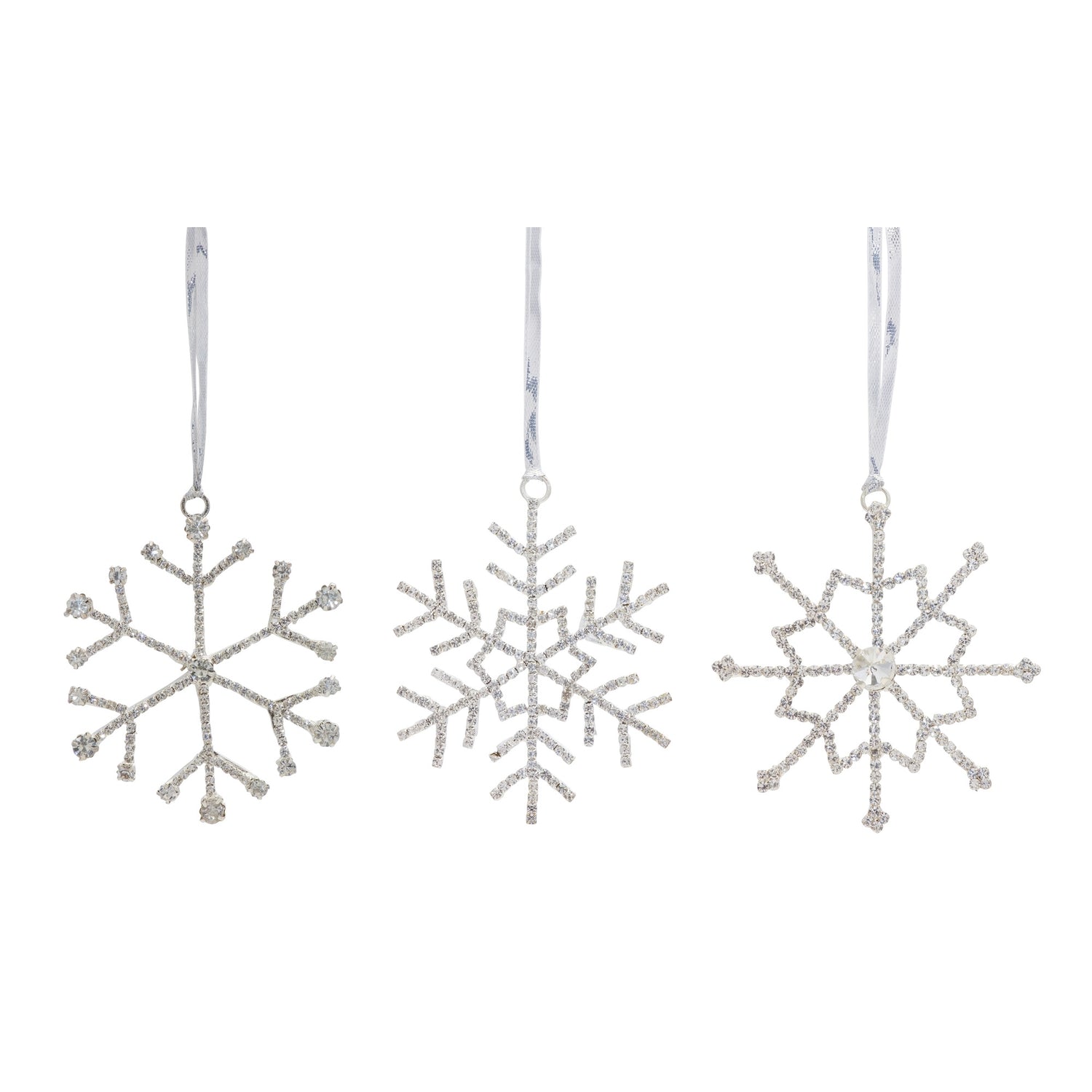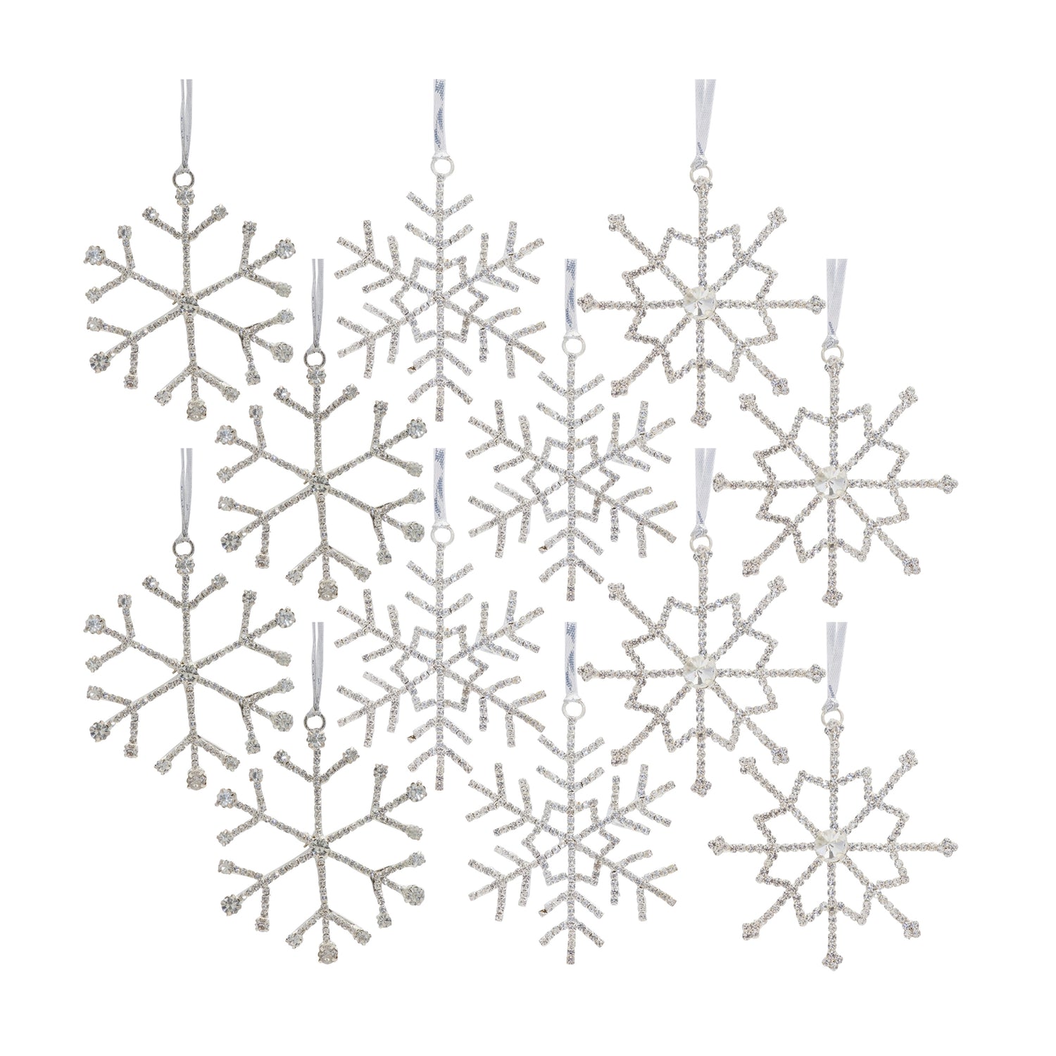 Adorn your Christmas Tree with this beautiful set of Jewel Snowflake Ornaments. Featuring three assorted designs and twelve total pieces, the traditional snowflake design paired with the chic silver crystal finish and jewel accent makes this piece the perfect addition to your holiday tree decor. They can be used as Christmas gifts for friends to cherish, or you can display the set on your own tree and enjoy them for years to come.