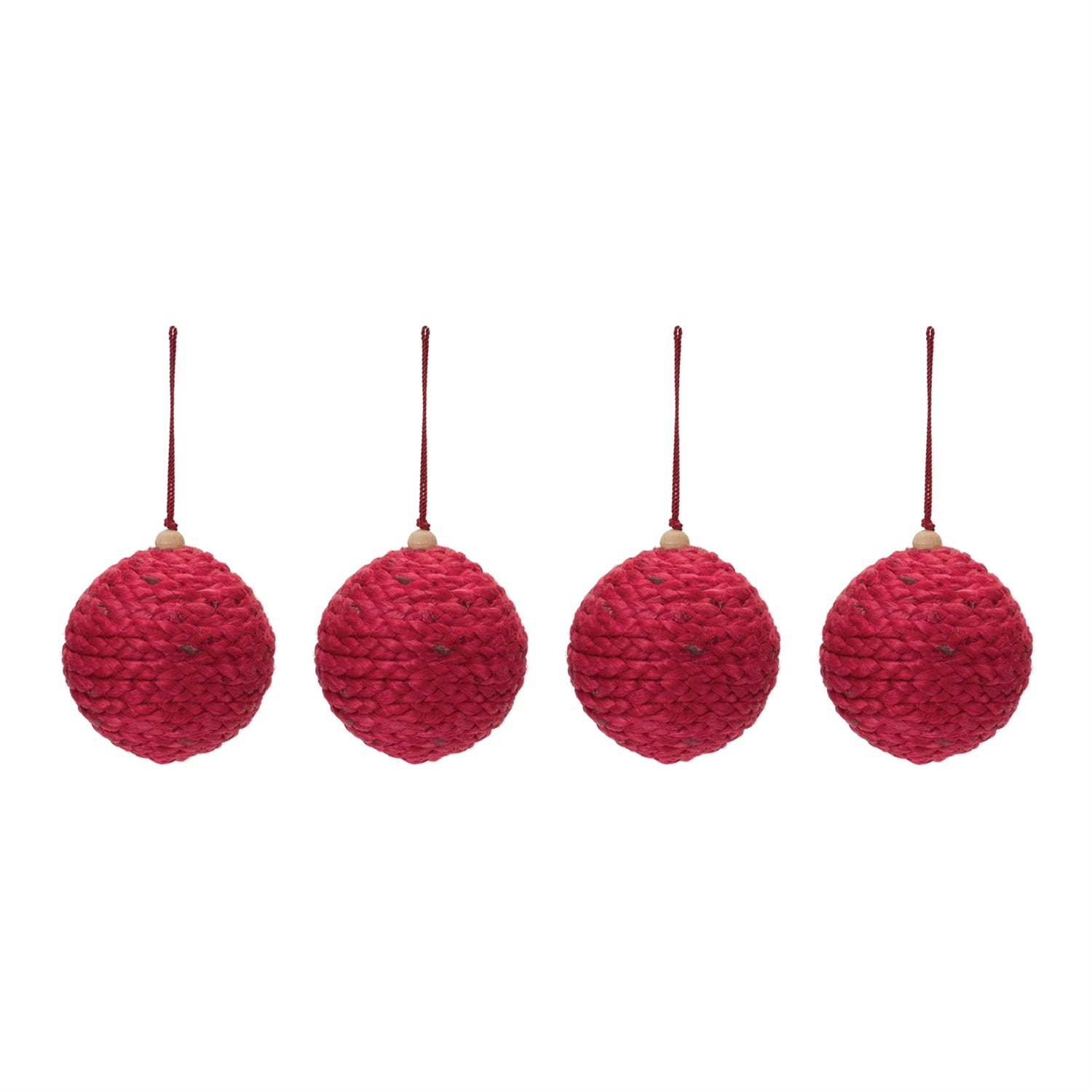 Make your holiday decor shine brighter with this Set of Jute Ball Ornaments! Our natural woven jute composition creates a cozy, wintery look that will make your Christmas tree sparkle. With a beaded wood accent and rope hanger, these ornaments are perfect for any holiday decor. Get your set of ornaments today and bring the winter wonderland to life! v