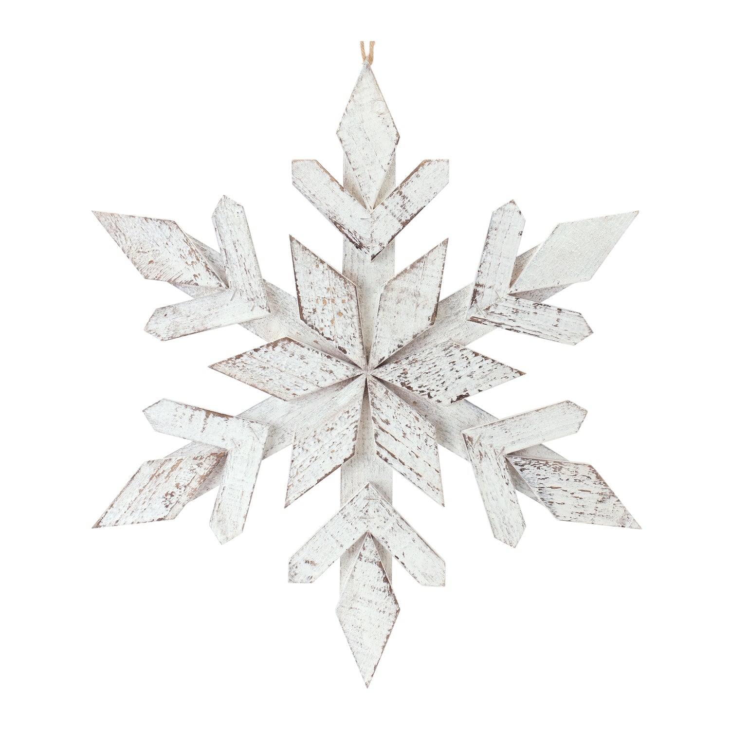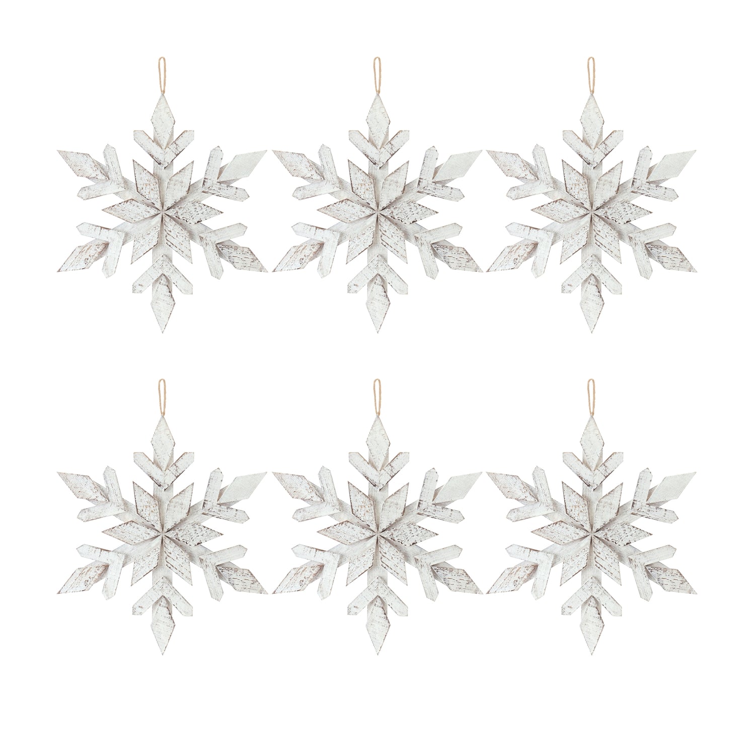 Adorn your Christmas Tree with this beautiful set of Snowflake Ornaments. The ornate snowflake design paired with the rustic white-washed finish makes this set the perfect addition to your holiday tree decor. The quality wooden composition is sure to last for seasons to come. Mearuing over 17" around, this ornament is sure to make a statement! The pieces can be used as gifts for friends to cherish, or you can display the set on your own Christmas tree and enjoy them for years to come.