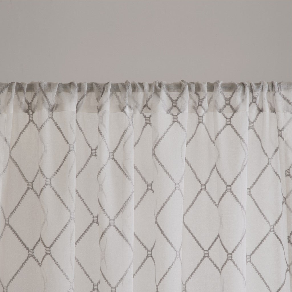 Enhance your space with the Madison Park Irina Diamond Sheer Window Curtain, featuring an elegant diamond embroidery design on lightweight sheer fabric. This curtain softens natural light and adds grace and charm to any room.