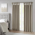 Energy efficiency meets a sophisticate style with the Madison Park Emilia Twist Tab Total Blackout Window Curtain. This pewter window curtain panel showcases a DIY twist tab top finish that allows you to create an elegant display in your living room or bedroom space. The faux silk sheen base fabric features a 3 pass foamback liner on the reverse to block out all outside light, noise, and intrusion ensuring the highest level of privacy. Using thermal technology, the total blackout curtain helps provide maximum energy savings by keeping your room the perfect temperature through the seasons. While this window panel is also OEKO-TEX certified, meaning it does not contain any harmful substances or chemicals, ensuring quality comfort and wellness. This twist tab total blackout window panel is perfect for use in bedrooms, media rooms, or any private space. As shown in the image, two curtain panels need to be purchased for each window; Fits up to a 2" diameter rod.