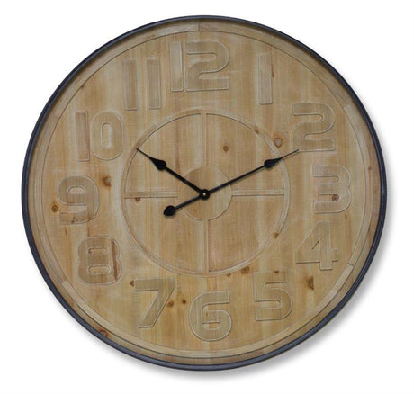 Natural Wooden Wall Clock with Metal Frame 31.5"D