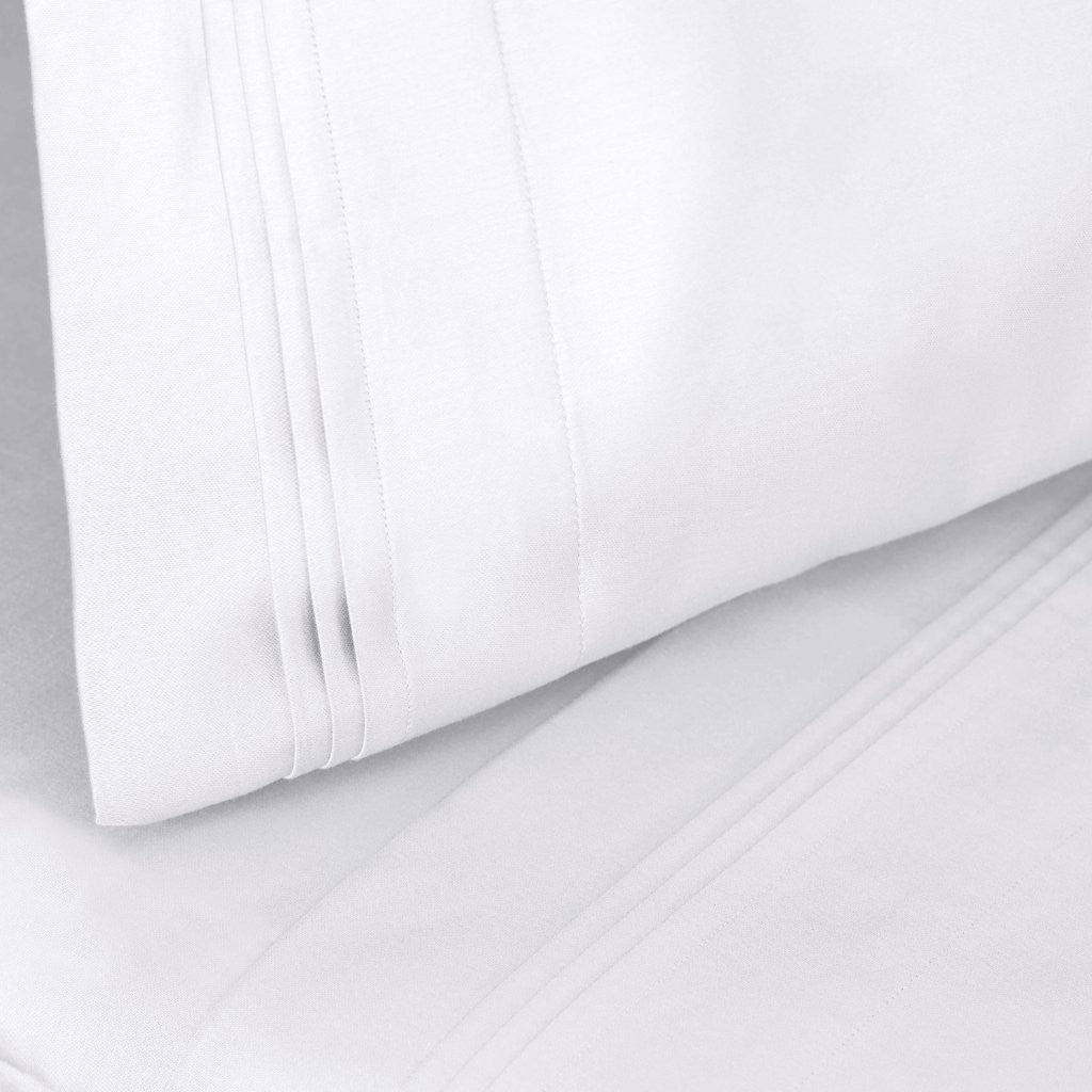 Designed with practical luxury in mind, each set includes a generously sized fitted sheet with deep pockets to accommodate mattresses up to 18" thick, a flat sheet, and matching pillowcases—all finished with refined 4-inch hems for a polished appearance.