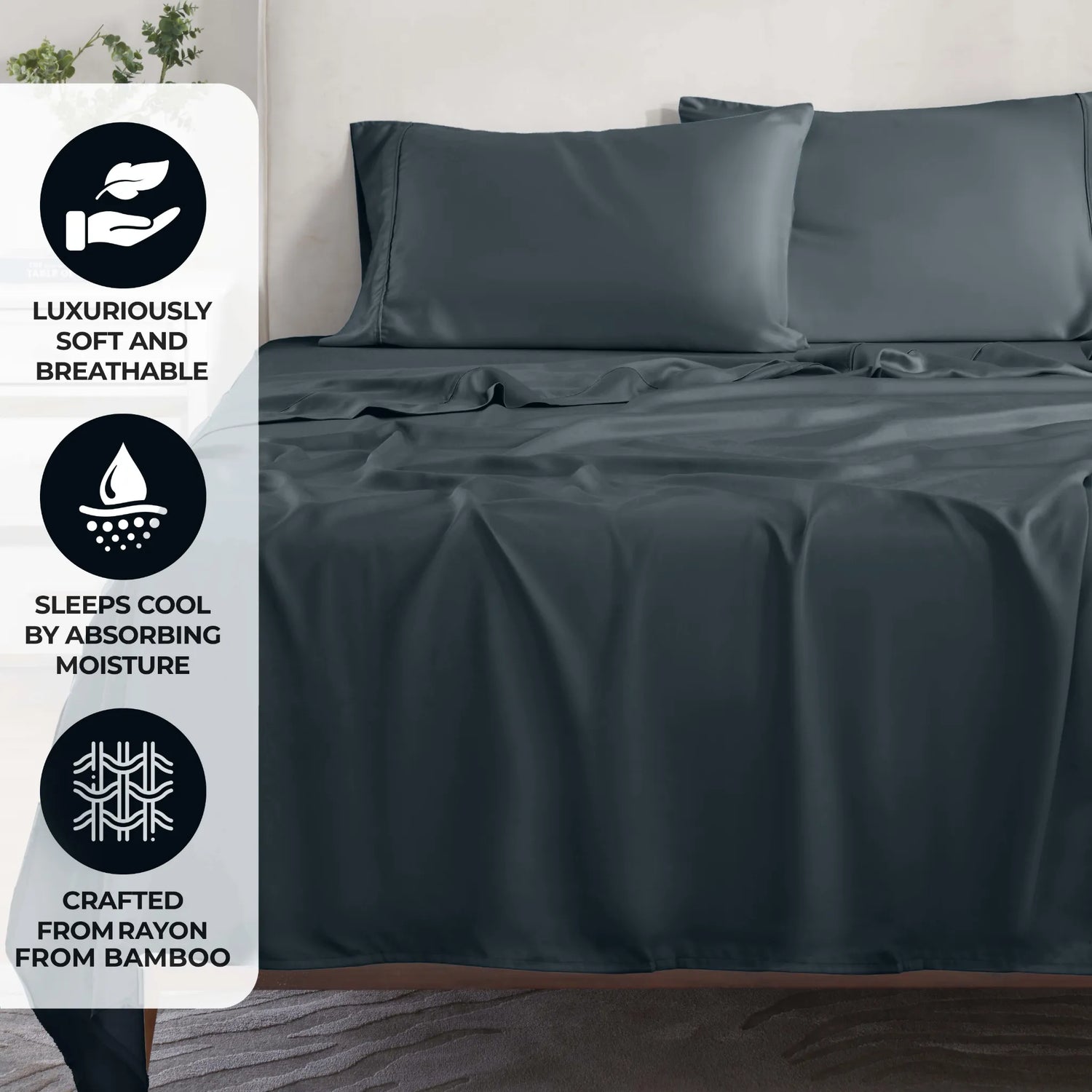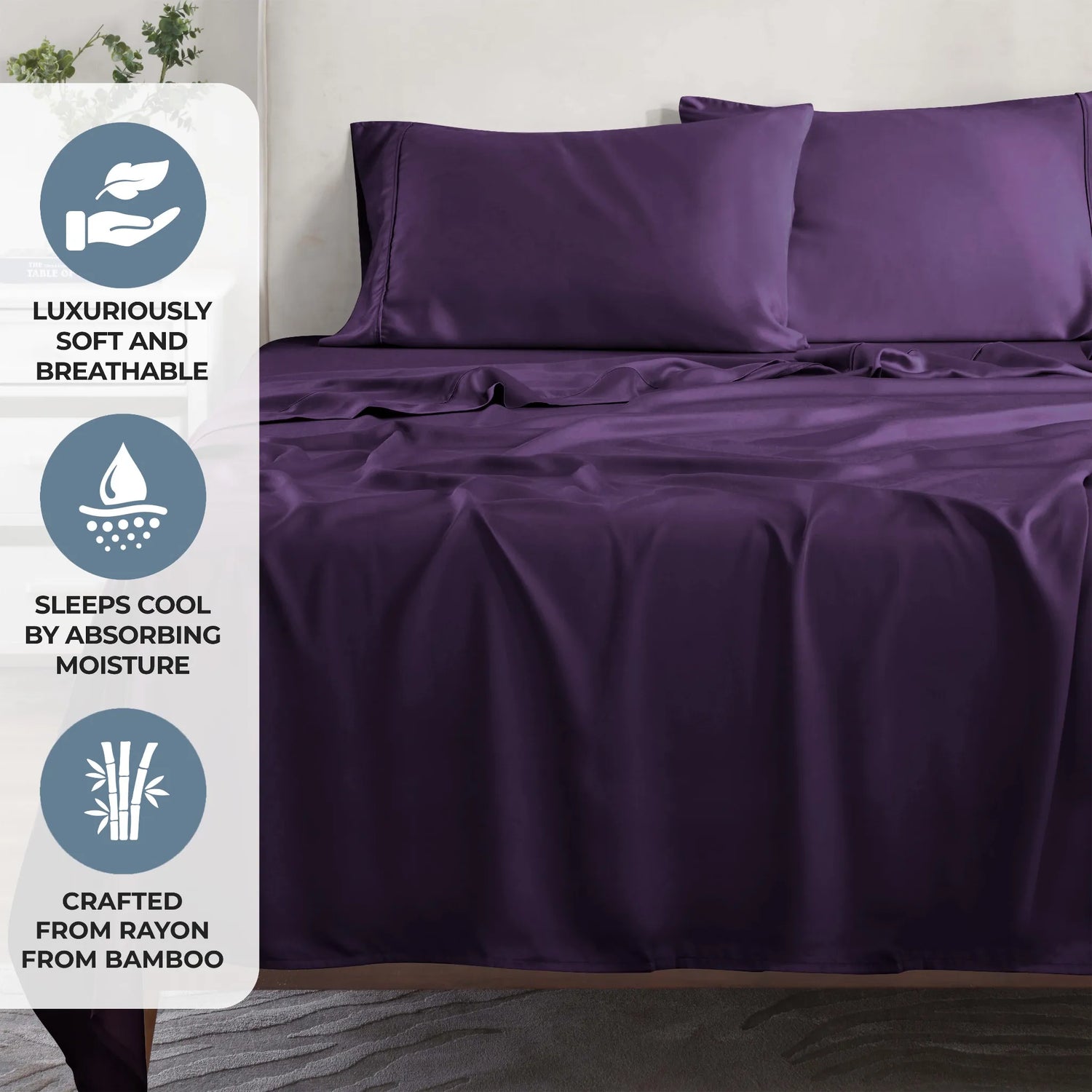 The solid, classic design pairs well with any bedroom decor, adding understated elegance to your bedding collection. Experience the silky softness and natural breathability of bamboo, shop this cooling sheet set today and sleep comfortably all night long!