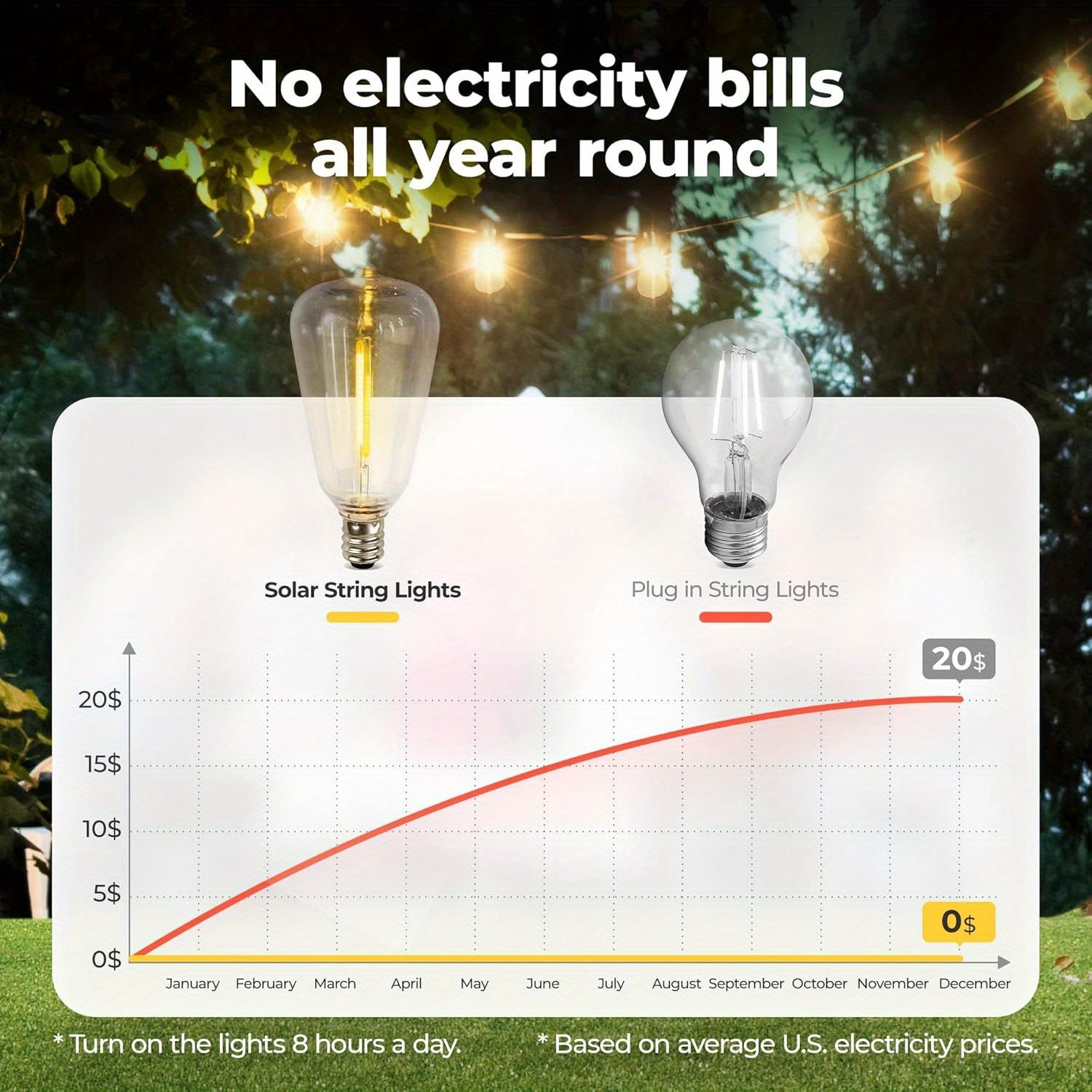 Built for durability and ambiance, this outdoor lighting solution offers 50ft and 100ft options with flexible installation for yards, porches, decks, tents, fences, pergolas, balconies, and beyond. Powered entirely by the sun, they provide an eco-friendly and cost-effective alternative to traditional electric lights—no outlet needed.