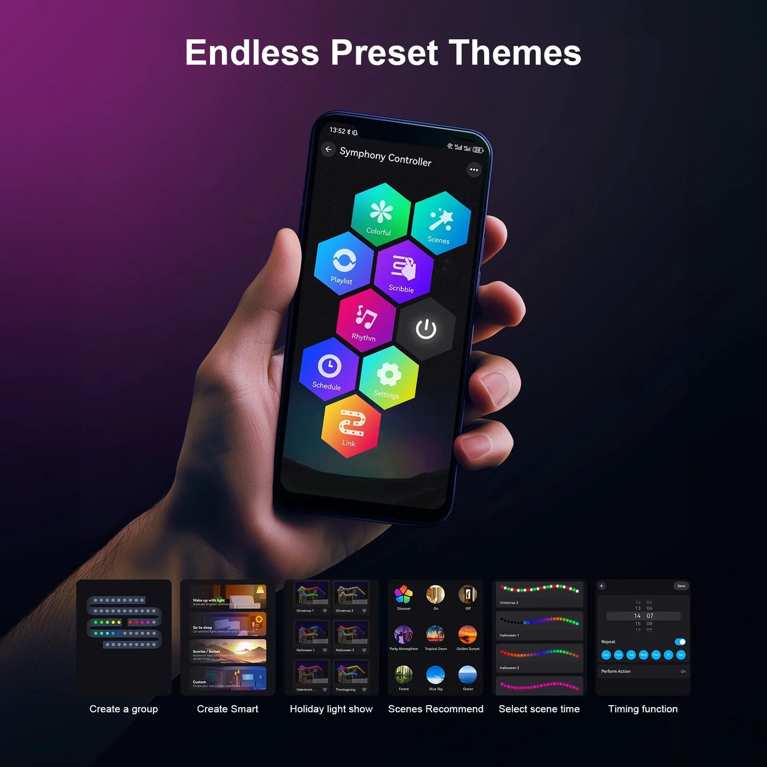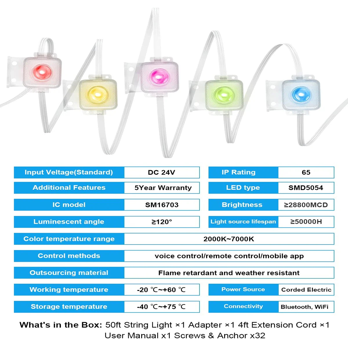 20M Smart RGBIC Outdoor LED Eaves Lights App Remote Control Flashing Home Decor.