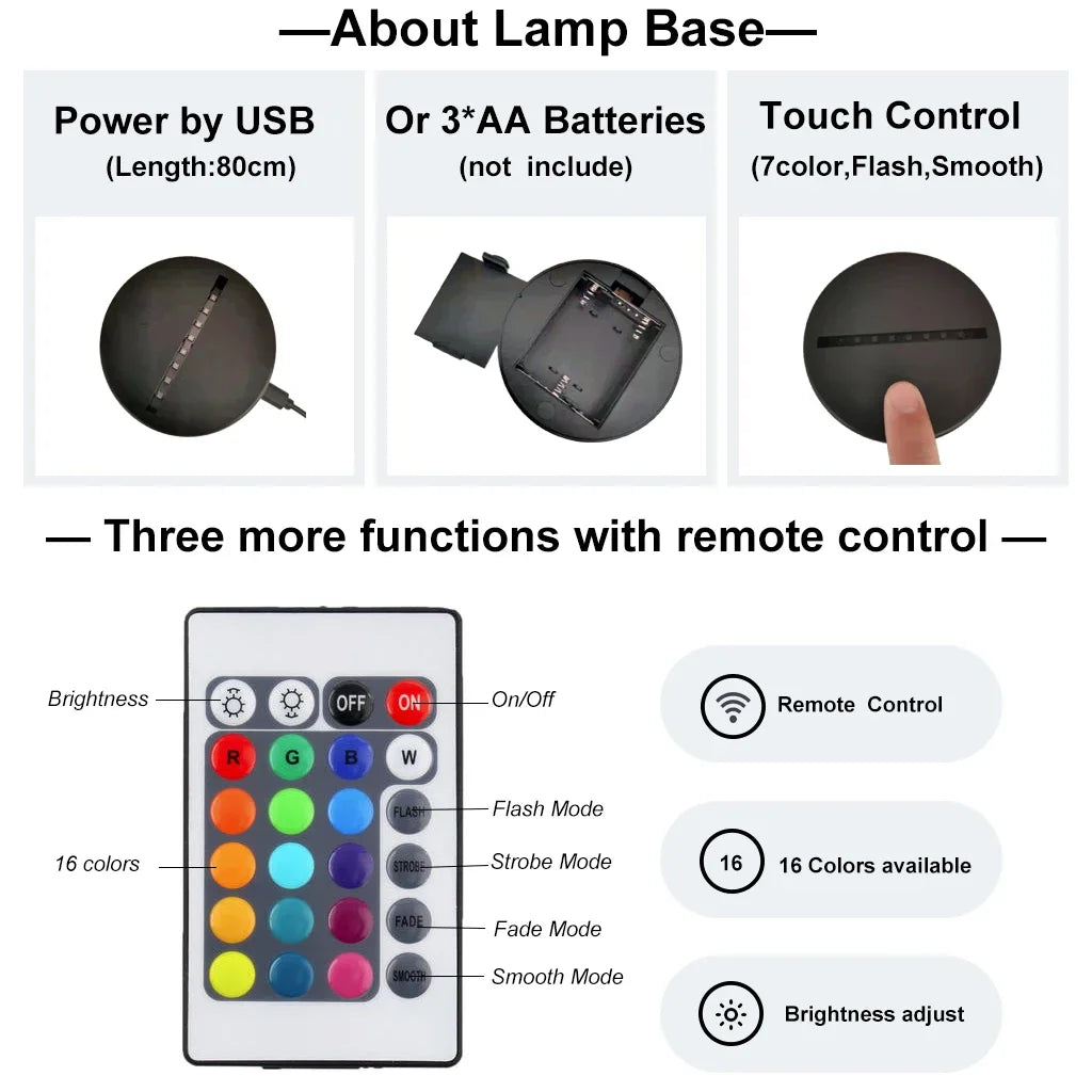 The 3D Anime Illusion LED Night Light creates a striking holographic-style visual using a