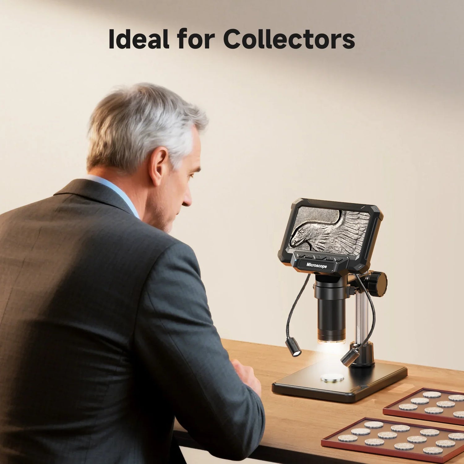 Inspect fine details with clarity using this compact digital microscope designed for coin analysis, electronics repair, and close-up observation. The HD display and built-in lighting deliver sharp, real-time visuals for accurate inspection at home or on the workbench.