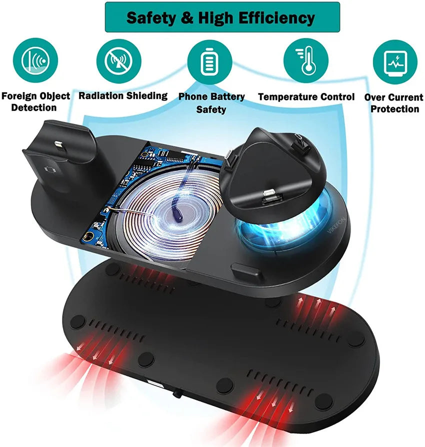 6-in-1 Charging Design: Simultaneously powers your iPhone, Apple Watch, AirPods, and other Qi-enabled devices from a single dock — perfect for households and professionals managing multiple gadgets.