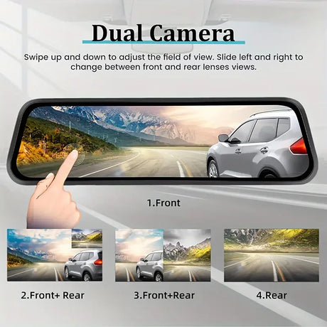4K Mirror Dash Cam with Touch Screen, Front Rear Dual Recording & Night Vision