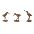 Elevate your home with the sleek, sculptural charm of these Modern Sea Bird Figurines. Featuring a trio of abstract bird shapes in rich brown and gold tones with metallic accents, each piece showcases a distressed finish and carved detailing. Perfect for modern coastal or contemporary interiors, this set of three assorted birds add a refined, nature-inspired touch to mantels, bookshelves, or tabletop arrangements.