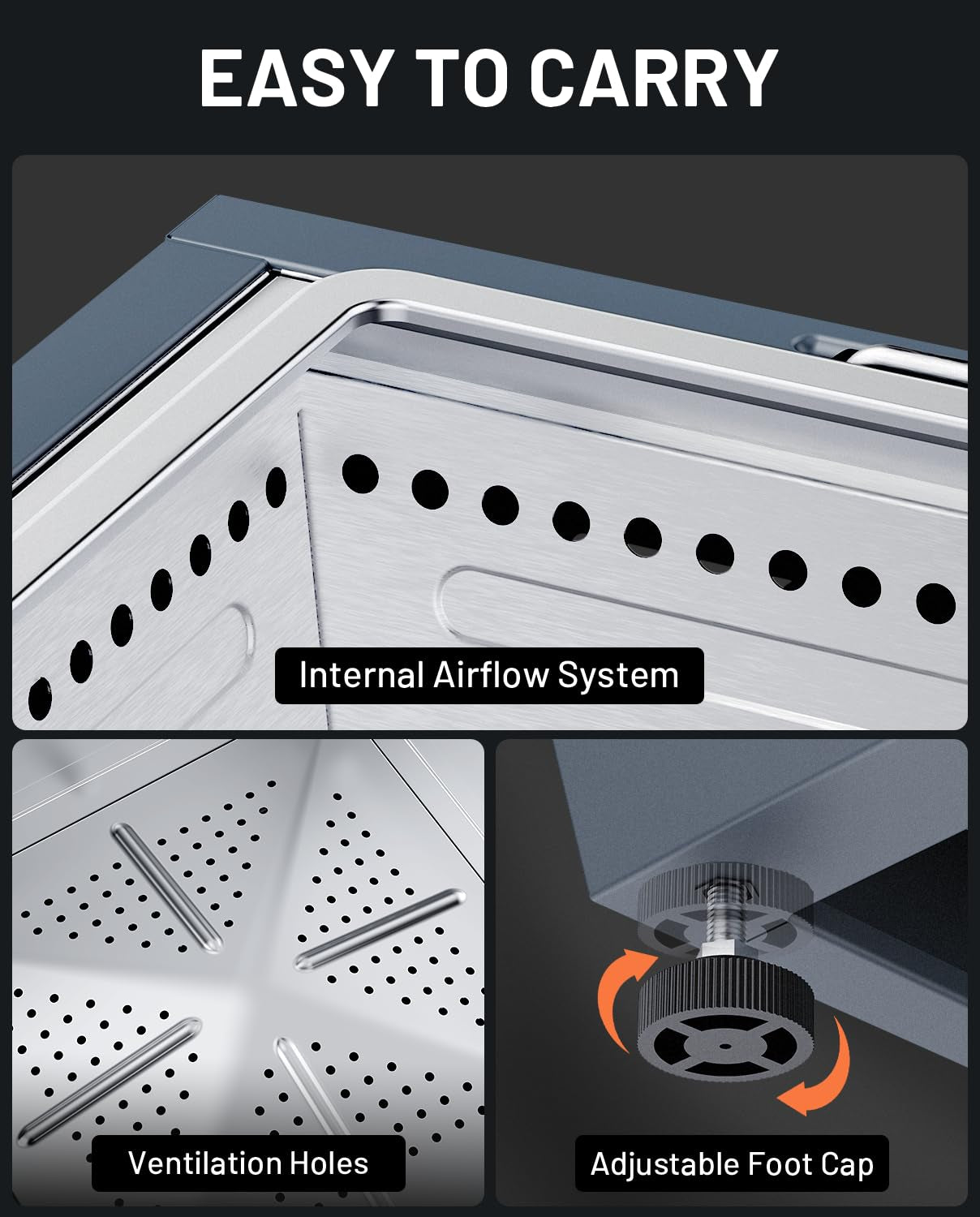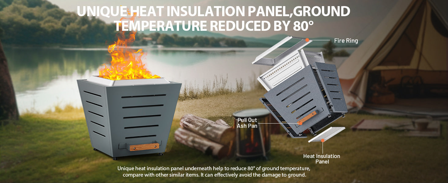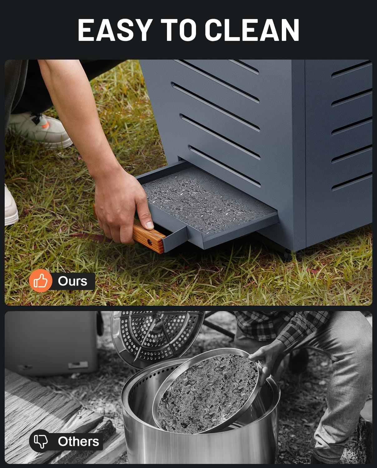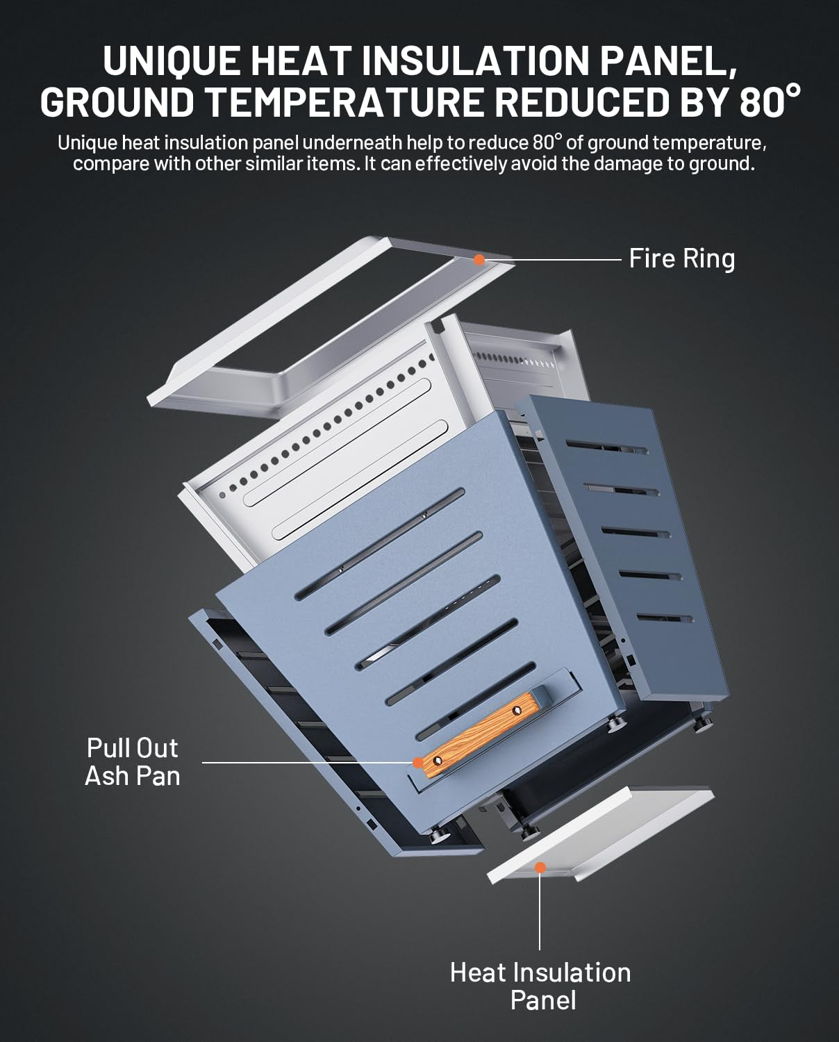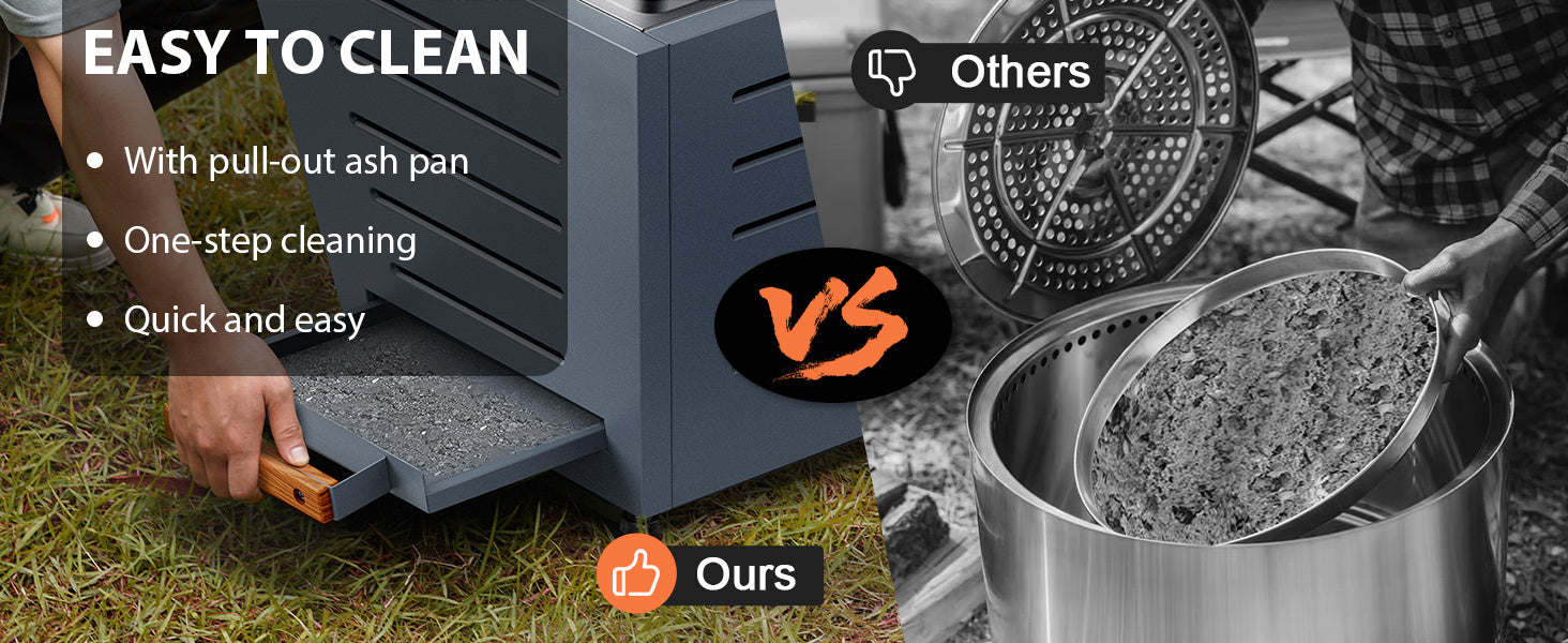 - Easy to Clean: Underneath the wood burning fireplace, innovative pull-out ash pan can be gently pulled out for ash remove. Unlike traditional fire pits, pouring out the ash only by turning the product over when the stove has been extinguished, the pull-out ash pan is designed to allow you to clean up the accumulated ash without soiling yourself, offering a better experience for you!