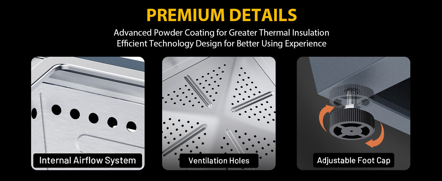 - Long Lasting & Bottom Insulation: The interior is made of stainless steel and the exterior is coated with advanced high-heat powder, which effectively extends the life of your outdoor fire pit. The heat shield located at the bottom of the fire pit reduces the bottom temperature by 176℉, effectively reducing damage caused by heat to the ground.