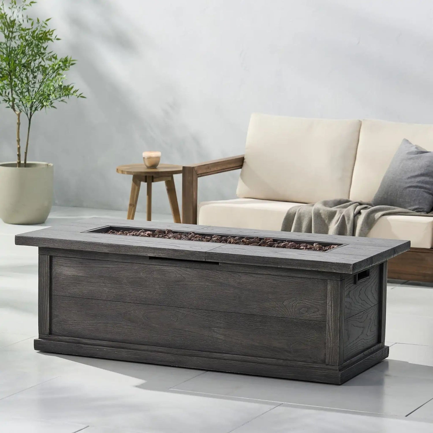 Transitional Rectangular Outdoor Propane Fire Pit with 50,000 BTU